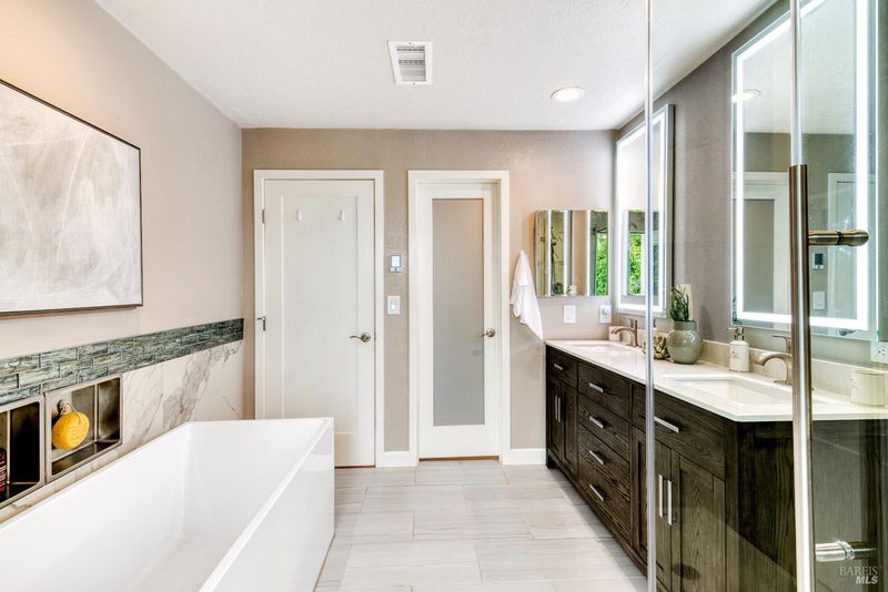 - Double Sinks, Low-Flow Toilet(s), Shower Stall(s), Soaking Tub