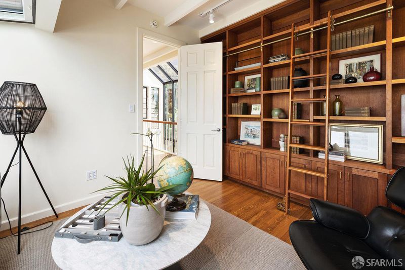 Two adjacent, detached homes on a private cul-de-sac Telegraph Hill. Primary residence plus guest cottage with a total of 4 bedrooms, 3.5 baths, office, family room, exquisite rooftop deck, two additional decks, gardens, and amazing Bay views.