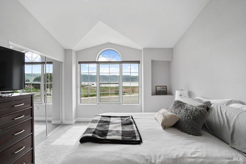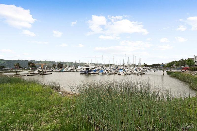 Enjoy stunning water views overlooking the Carquinez Strait from this move-in ready townhome in desirable Portside Village. This 2-bedroom, 2.5-bath home features unobstructed water and hillside views from all main living areas and the primary bedroom. Upon entry, you're welcomed by abundant natural light, fresh interior paint, and soaring ceilings in the living room, highlighted by a custom entertainment cabinet and beautiful engineered hardwood flooring that flows throughout the main living space. The main level showcases an updated kitchen with dramatic granite countertops, updated wood cabinetry with a pantry closet, GE stainless steel appliances, and a gas stove, along with a spacious formal dining areaideal for everyday living and entertaining. Upstairs, the primary suite boasts breathtaking views and a beautifully updated bathroom with tile flooring, a walk-in marble lined shower, and a stylish vanity with marble countertops. A guest bedroom and full bathroom complete the upper level, along with convenient indoor laundry. Additional highlights include an oversized two-car garage with epoxy flooring and ample storage space, a spacious lighted storage area under the home, an Ecobee climate control thermostat, updated doors and mirrored closet doors throughout, and heat-absorbing blinds on the living room slider and in the primary bedroom. Just steps from your front door, you're adjacent to the Benicia Marina, where you can enjoy paddle boarding, kayaking, waterfront biking, and scenic walking paths. Located only two blocks from downtown Benicia, this home puts restaurants, shops, the weekly farmers market, and charming Main Street events, a 5 minute walk away!
