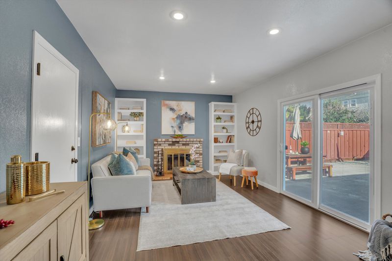 Beautifully maintained single-story home offering comfort, efficiency, and exceptional outdoor living. Charming front porch and picturesque living room window create welcoming curb appeal. Interior features include crown moulding in the living room, recessed lighting and dimmers throughout, solid core paneled doors with aged bronze hardware, and extra insulation for added energy efficiency. The cozy family room features a fireplace with custom built-in shelving and a sliding door with built-in blinds, perfect for relaxing or entertaining. The kitchen is equipped with quartz countertops and maple cabinetry. The primary bedroom offers an ensuite bathroom. Step outside to an expansive, low-maintenance backyard showcasing mature orange, lemon, avocado, pomegranate, honey plum, and peach trees, along with three raised garden beds. A versatile shed with electrical, insulation, and windows offers excellent flex space for a home office, studio, or hobby room, plus an additional storage shed. Sheet-rocked andi nsulated garage with attic storage access. Room for RV or boat parking along the side yard.