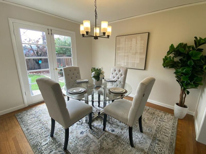 Lowest priced home in desirable Sunnybrae neighborhood! Front yard with beautiful Japanese Maple tree and lush landscaping. This two bedroom home offers nice separation between upstairs bedrooms and main floor living. Inviting living room with vaulted ceilings, large picture window and cozy fireplace. Bright natural light throughout the home. Formal dining room with French doors leading out to mature landscaped backyard, perfect for entertaining. Hardwood floors throughout. Freshly painted inside and out. Oversized one car garage with laundry and extra storage. Close to parks, schools, downtown restaurants & shopping. Easy access to 101, 92, 280, and Caltrain.