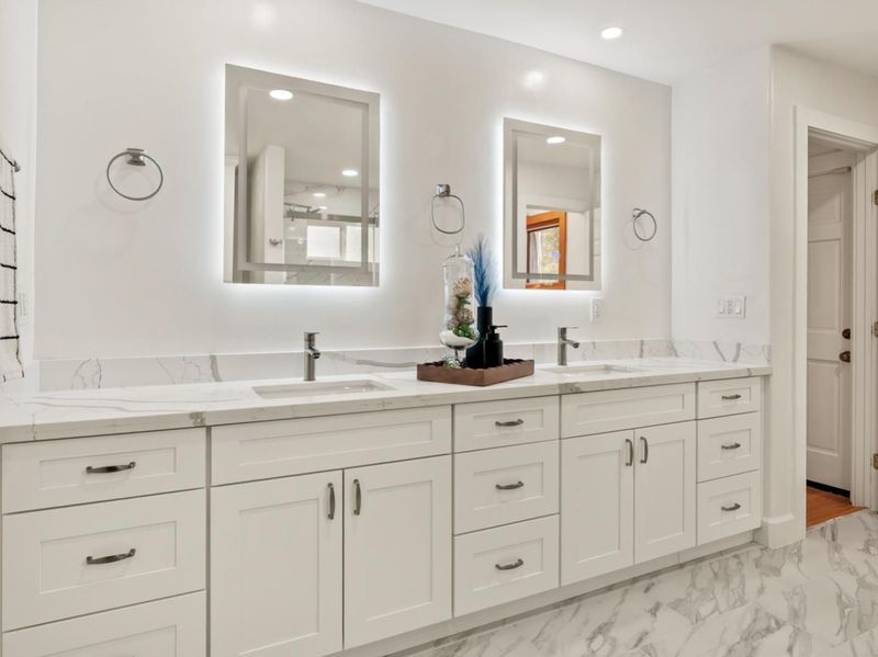 - Double Sinks, Primary - Stall Shower(s), Solid Surface, Stall Shower