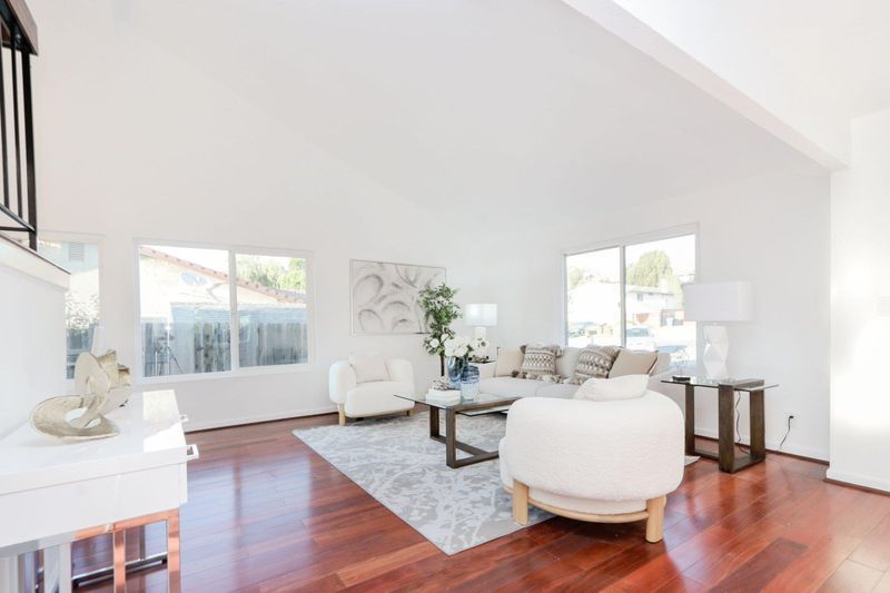 Beautifully renovated 4BD/2.5BA contemporary home in the heart of Warm Springs on an expansive 10,406 sq ft lot. This light-filled 1,787 sq ft residence features high vaulted ceilings, rich hardwood floors throughout, dual-pane windows, central heater and A/C. Major renovations done recently: fresh interior/exterior paint, brand-new kitchen, new bathrooms, new recessed lighting in all bedrooms, new garage controller & opener, and an upgraded drainage system with a French drain and 2 sump pumps. The newly designed kitchen showcases new quartz countertops, abundant new cabinetry, and new stainless-steel appliances - perfect for everyday living. A convenient main-level bedroom and half bath with a new vanity are ideal for guests. Upstairs are three well-sized bedrooms, including a large master suite. The two renovated baths feature new showers, vanities, toilets, faucets and new tile. Step outside to your own private, park-like backyard with a spacious deck perfect for everyday relaxation and entertaining. An attached two-car garage and a storage shed offer ample space. Prime location near Warm Springs Community Park, dining, and shopping, with easy access to Hwy 880/680 and BART. Short commute to Tesla. Served by top-rated Fremont schools: Warm Springs Elementary/Irvington High.