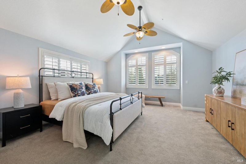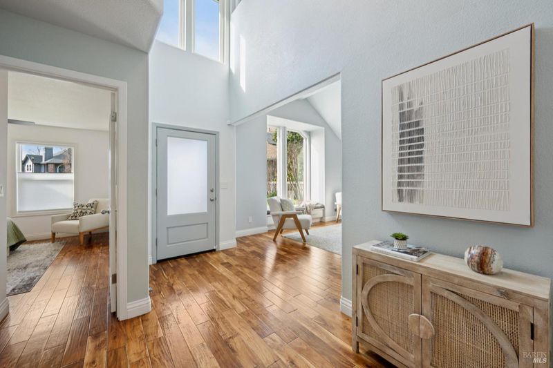 Located on a peaceful cul-de-sac close to downtown Healdsburg, this stunning and spacious home with additional flex space offers both luxury and practicality. Step inside to discover a thoughtful layout, including a downstairs bedroom with a full bath. Dual-zone climate control and two fireplaces ensure comfort year-round, while energy-efficient solar panels combine sustainability with cost savings. Other features include an office, high-end appliances, stunning stone countertops, and acacia flooring. Upstairs, you'll find three additional bedrooms, including the primary suite with a beautifully remodeled ensuite bathroom featuring gorgeous Italian marble and a soaking tub that invites you to unwind after a long day. Outdoors, the .3-acre property is a lush oasis with professionally landscaped yards designed to provide color year-round, and raised beds that make gardening a breeze! Picture weekends spent by the solar-heated pool playing, lounging, and unwinding. Whether hosting friends or enjoying quality time with family, this backyard retreat, complete with an automatic pool cover, delivers the perfect balance of fun and relaxation. To top it all off, the home faces east/west, allowing you to enjoy both the sunrise and sunset. Need extra space? The additional detached one-car garage/flex area offers endless possibilitiesan art studio, gym, or quiet workspace.This is more than a home; it's a lifestyle. Don't miss the opportunity to make it yours!