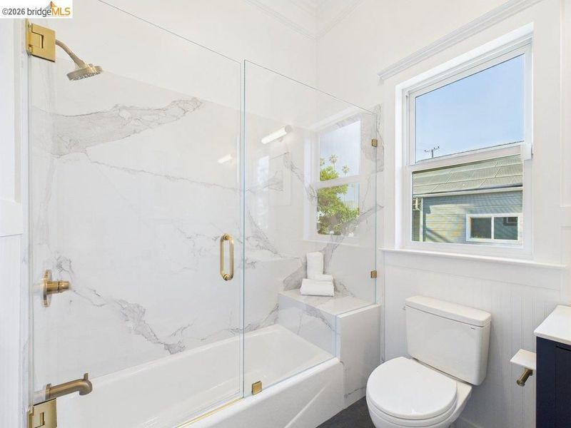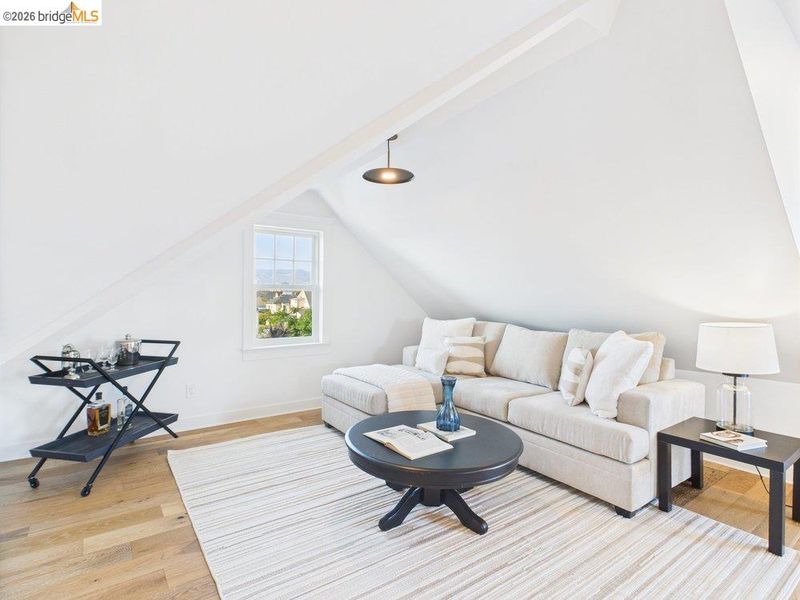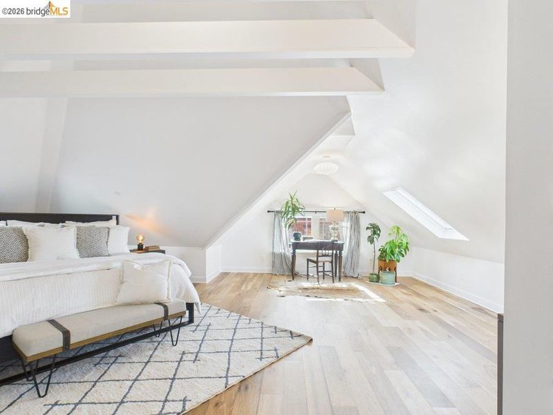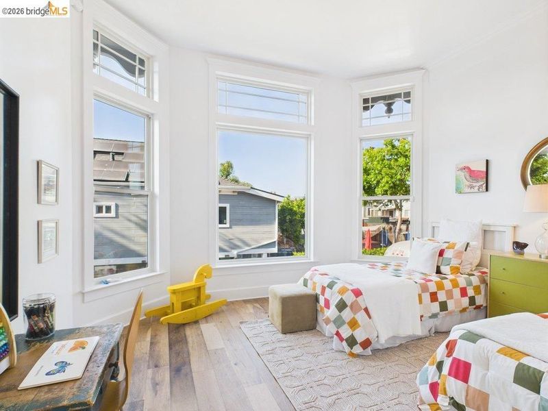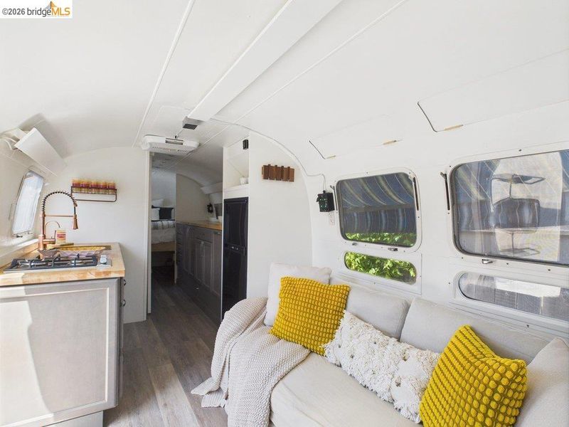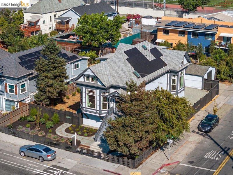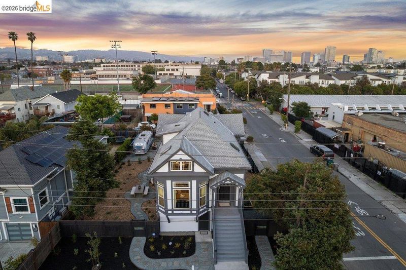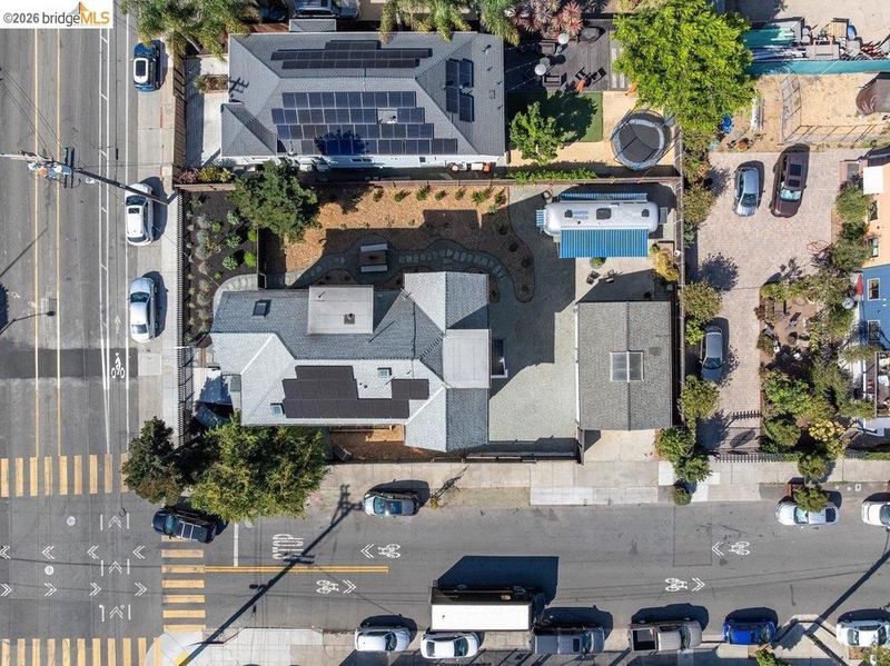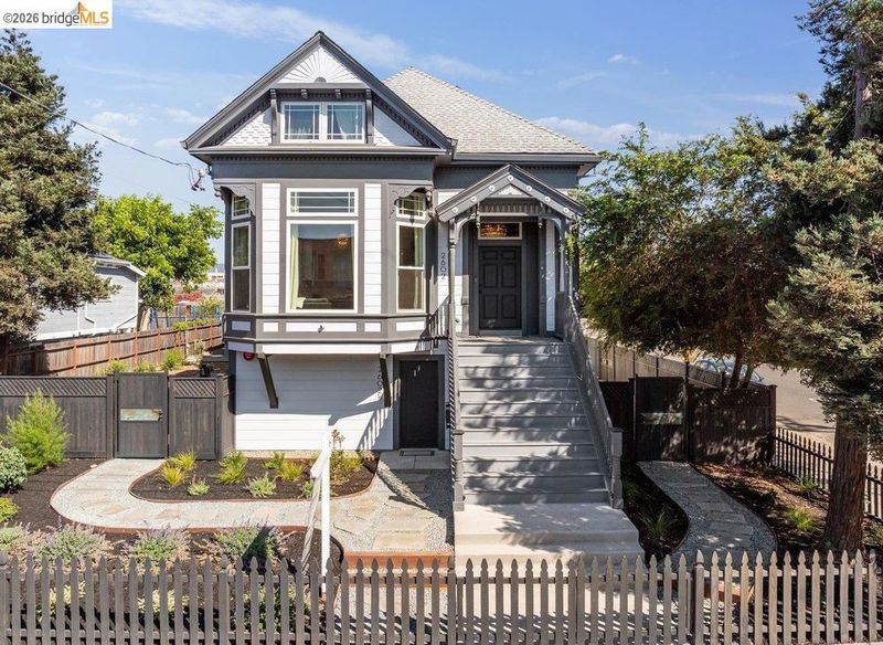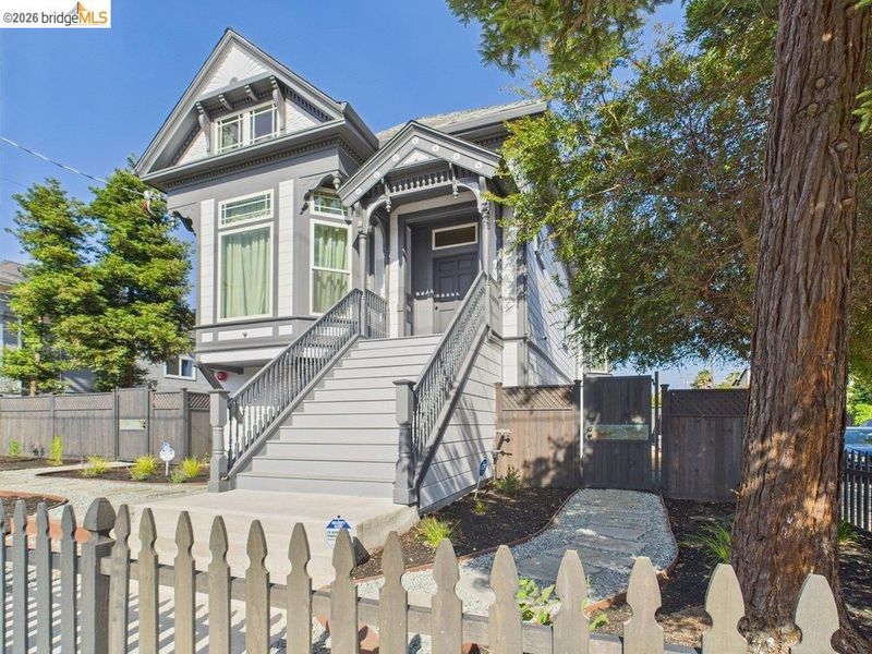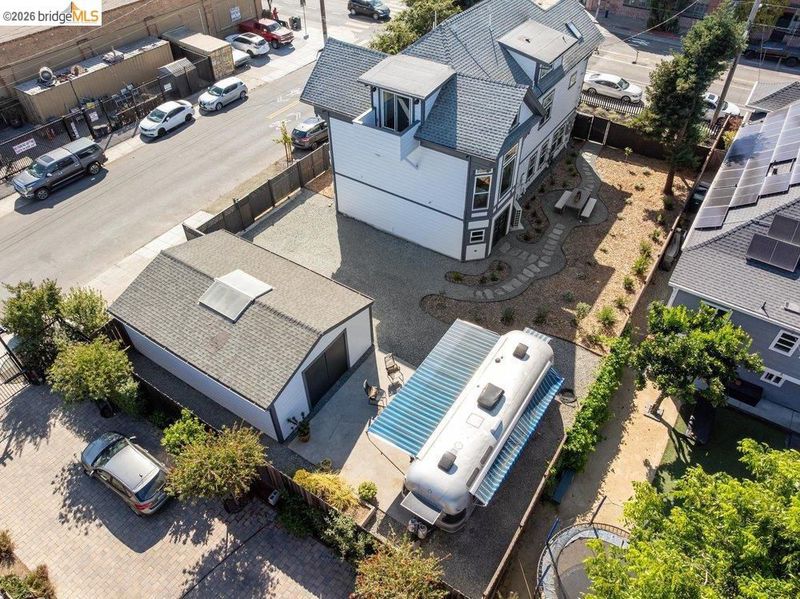 Where Victorian artistry meets modern sustainability, 2602 Adeline Street is a rare West Oakland property with the makings of an extraordinary compound. The main residence, equipped with solar, is a gorgeously reimagined two-story home featuring an open-concept kitchen, dining, and living room, two sunlit bedrooms with soaring ceilings, and 1.5 stylish baths downstairs. Upstairs, two architecturally striking rooms and an additional 1.5 baths include a flexible retreat—fabulous 4th bedroom or lounge—with wet bar, sitting areas, and a balcony with views of the Town and Hills. Outdoors, a parklike yard showcases mature redwoods, garden beds, and multiple sitting areas in West Oakland’s coveted microclimate, ideal for fruit trees and outdoor dining. Beyond the home lies compound potential: a fully restored 1982 Airstream in final stages of permitting as a dwelling, a huge detached garage/workshop with EV charger, and a lower unit with French doors and new foundation—ready for build-out as guest space, studio, or flex-use. A blend of history, design, and versatility, 2602 Adeline is a property like no other.