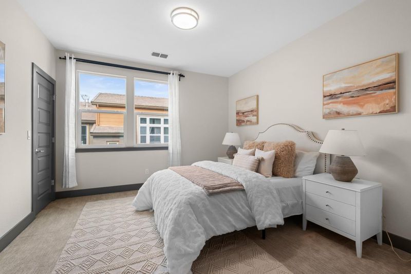*Modern home with a functional first-floor bedroom and full bath, ideal for guests, extended family, or a home office. The next level features an open living & dining area with a kitchen and fully opening balcony doors. High ceilings enhance the spacious feel. *The kitchen is thoughtfully designed, featuring a large center island offering excellent cabinet storage, pantry space, and Energy Star stainless steel appliances. The upper level includes two generous ensuite bedrooms, with the primary suite offering dual sinks and a walk-in closet. Additional highlights include recessed lighting, double-pane windows, in-house laundry, tankless water heater, & a 2-car side-by-side garage with EV outlet. *The community provides a children's play area and BBQ space, all with low HOA fees. Nearby shopping includes Ranch 99, Costco, Sprouts, H-Mart, Safeway, and Trader Joes, plus outdoor recreation at Townsend Park and Alum Rock Park. Villa Sport Gym Club & Spa is also within walking distance. *Close to BART, VTA Light Rail, and quick access to Highways 680, 880, and 101.Near major employers including Nvidia, Google, Apple, and Supermicro, with walking access to Meta and Apple shuttle stops. Students attend highly rated Ruskin Elementary and Sierramont Middle School (both 9/10 GreatSchools).