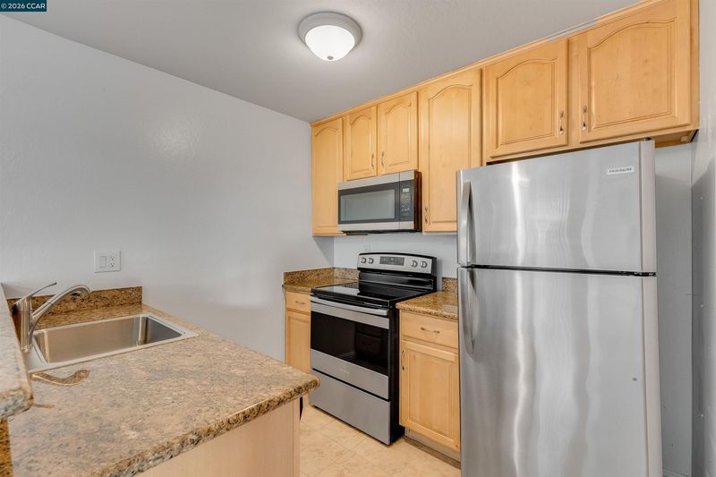 - Electric Range, Microwave, Refrigerator, Counter - Solid Surface, Electric Range/Cooktop