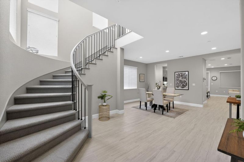 Built in 2021, this exquisite home with no HOA in the highly sought after San Marco Capri community offers luxury living. Offers a bright and open floor plan and inviting indoor-outdoor living. The expansive foyer and elegant spiral staircase offers a grand welcome. The spacious main level features a light-filled living area with high ceilings, recessed lighting, and an open flow into the dining and the kitchen that is a chef's paradise. High end cabinets, countertop, large walk in pantry, SS appliance, flooring, are just some of the great features. Along with the cozy family room, there is also a bedroom and a full bathroom on the first floor. A loft area, king size primary suite with luxurious bathroom, and additional 3 beds are on the second floor. Large lot of over 13k sq ft offer great opportunity for entertaining and building memories with friends and family. A convenient location near shopping, dining, schools, parks, and commuter routes. Solar is owned. Come and check out for yourself.
