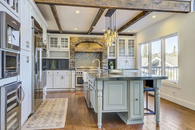 - Dishwasher, Double Oven, Gas Range, Microwave, Refrigerator, Counter - Solid Surface, Eat-in Kitchen, Gas Range/Cooktop, Kitchen Island, Skylight(s), Updated Kitchen