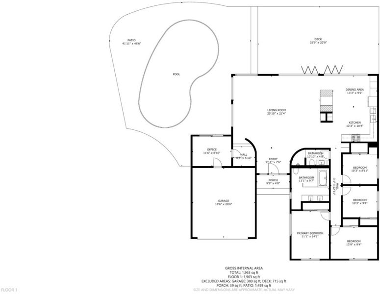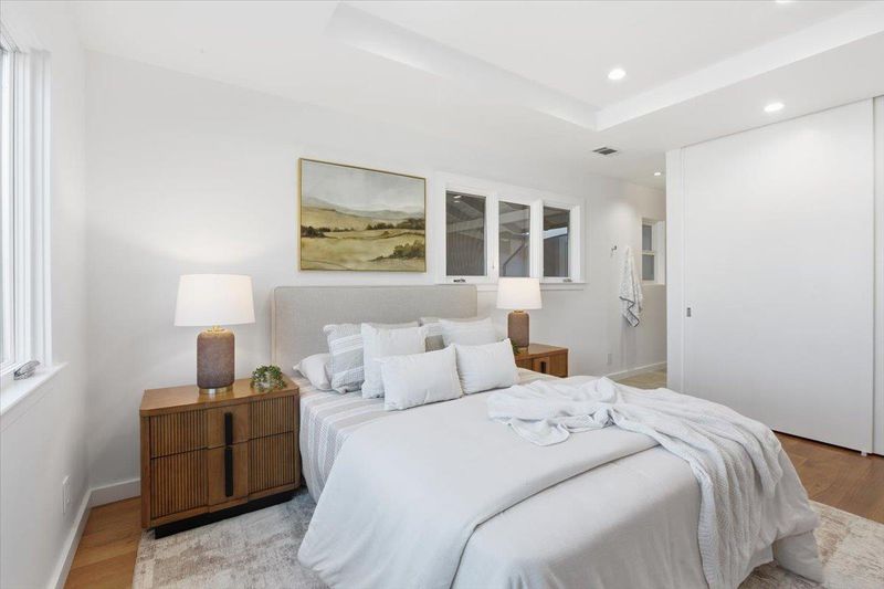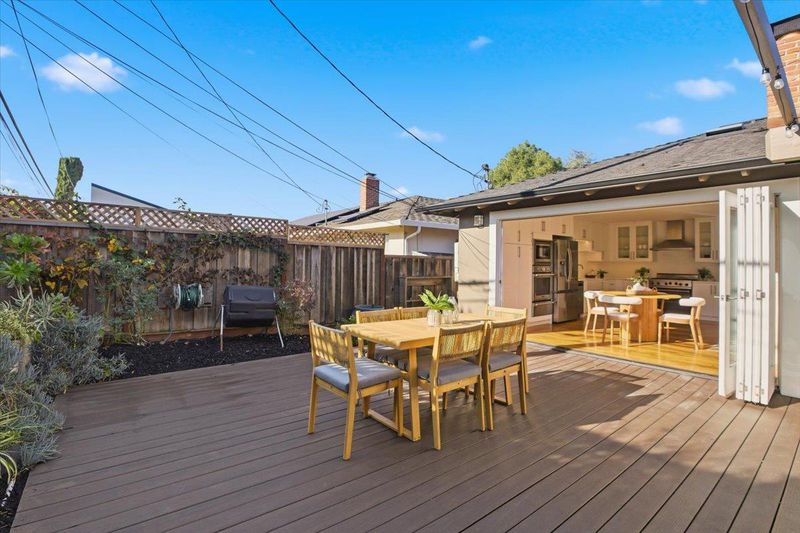 Custom 4-bed, 2-bath home showcasing thoughtful design, quality craftsmanship, fresh interior paint, & beautiful hardwood floors. The expansive living room is filled with natural light & opens through bi-fold doors to a large backyard deck, overlooking the sparkling, fenced swimming pool. The remodeled kitchen features glass composite countertops, white subway tile backsplash, farmhouse sink, & high-end appliances. Custom details are found throughout the home, including coffered ceilings, recessed lighting, and a see-through tiled gas fireplace. A versatile bonus room offers flexible space ideal for a home office or pool room. Both bathrooms are true showpieces with modern design & elegant tilework. The primary suite offers a spa-like retreat with an oversized open shower, soaking tub, double sinks, custom tile finishes, & heated floors. Additional highlights include a tankless water heater, owned solar system, rainwater collection barrel, extra attic storage, durable Ipe hardwood accents, drought-tolerant native landscaping, mature plum, blackberry, and blueberry plants. Located in a welcoming neighborhood known for its annual 4th July block party and Halloween potluck, this home offers a rare blend of custom design, indoor-outdoor living, sustainability, & community charm.