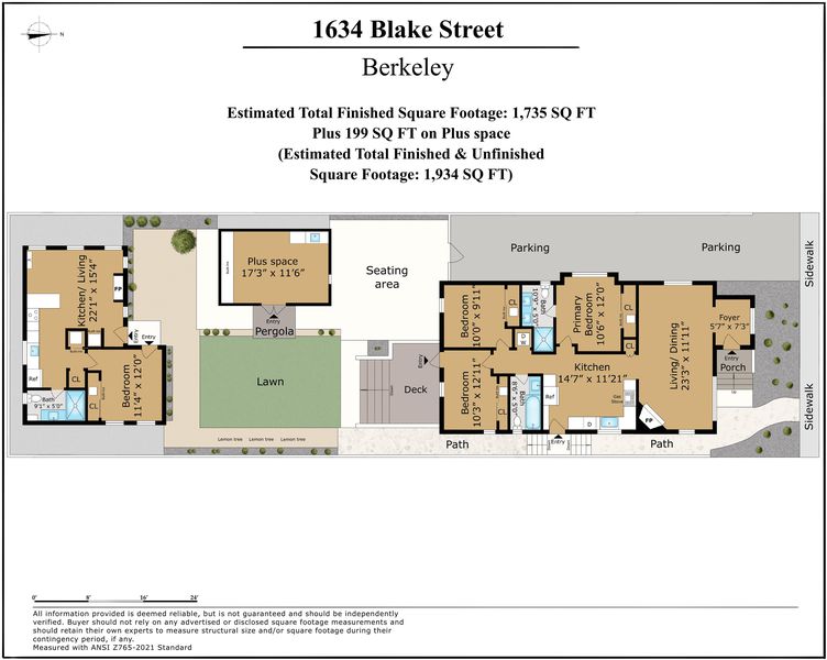 Reimagined 1912 Berkeley Craftsman with ADU + Office Studio — a rare, design-forward compound for modern living. The main residence offers 3 bedrooms and 2 baths anchored by a chef-inspired kitchen hub featuring a pot filler, multi-zone refrigeration, quartz countertops, and a custom island with wine chiller, counter seating, and waterfall endcap. Spa-like bathrooms showcase heated tile floors and night-lit vanities, while the luxurious primary bath is finished with a double marble-top vanity. Outdoors, citrus trees and vibrant landscaping frame multiple living areas, and a sunny, fully fenced backyard enhances privacy and creates a true compound feel—perfect for entertaining, relaxing, or working from home. The just built 1BD/1BA ADU—complete with its own electric meter and separate address—is anything but typical. Designed in complete harmony with the main house, it features high ceilings, and split heat/AC, offering exceptional flexibility for guests, rental income, multigenerational living, or a private retreat. A separate light-filled office studio adds even more versatility, ideal for work or play, and includes a wet bar and beverage chiller. Centrally located with easy access to all that Berkeley has to offer. BESO score: 8. Welcome home to 1634 Blake Street!