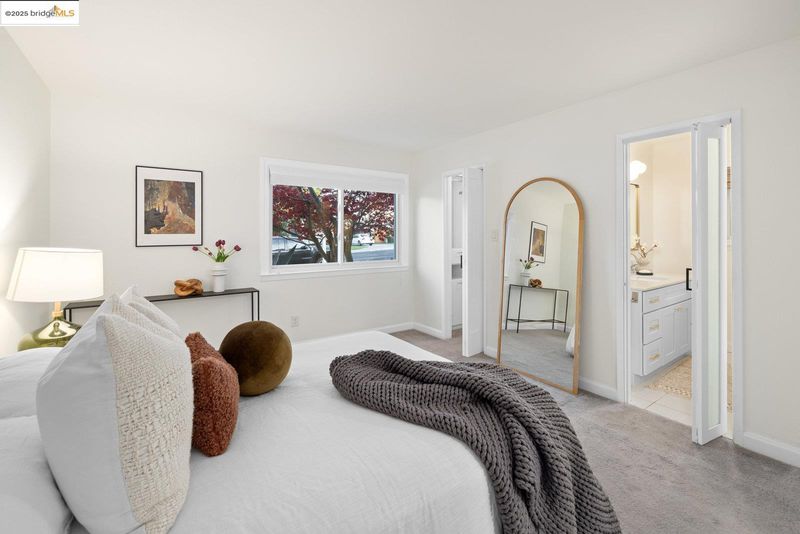 Spectacular Mid-Century Modern home located in Richmond’s desirable El Sobrante neighborhood. Step through the front gate into a sun-drenched courtyard, perfect for entertaining & relaxing. The expansive living room features a wood-burning fireplace, beamed ceilings and French doors that open to the front patio, creating a seamless indoor-outdoor connection. The kitchen is truly the heart of the home, thoughtfully updated with high-end appliances and custom pull-out cabinetry, flowing effortlessly into the dining area and adjacent family or flex room. Down the hall, you’ll find three generously sized bedrooms, all with custom closets. The laundry room with new cabinetry and beautifully renovated bathrooms. The spacious primary suite offers a custom-designed closet to keep everything perfectly organized. Comfort is ensured year-round with a new HVAC system, including a new furnace and air conditioning, new attic insulation, and all-new Andersen windows throughout. Additional upgrades include a new dishwasher and a tankless water heater. Private backyard retreat, complete with newer decking and fencing, and a sparkling hot tub sheltered by a custom pergola. Located just 15 minutes from Orinda and BART, this home is the perfect blend of style, comfort, and convenience.