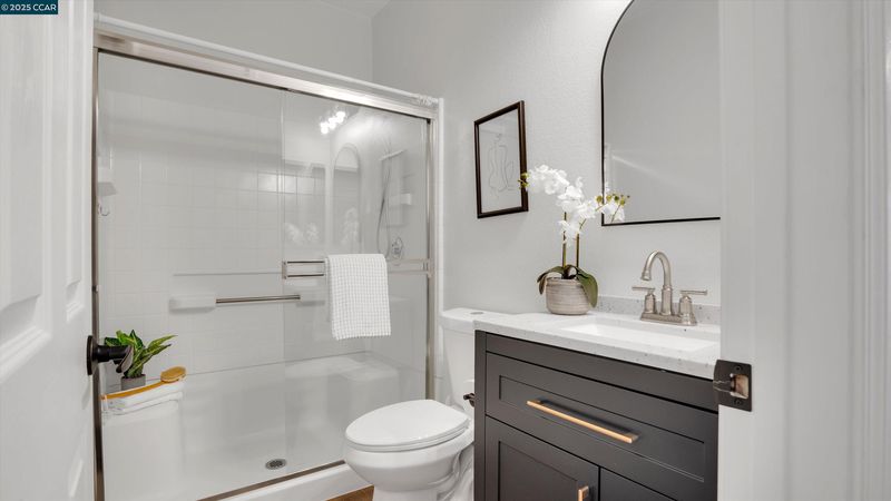 - Shower Over Tub, Stall Shower, Tile, Updated Baths, Double Vanity, Window