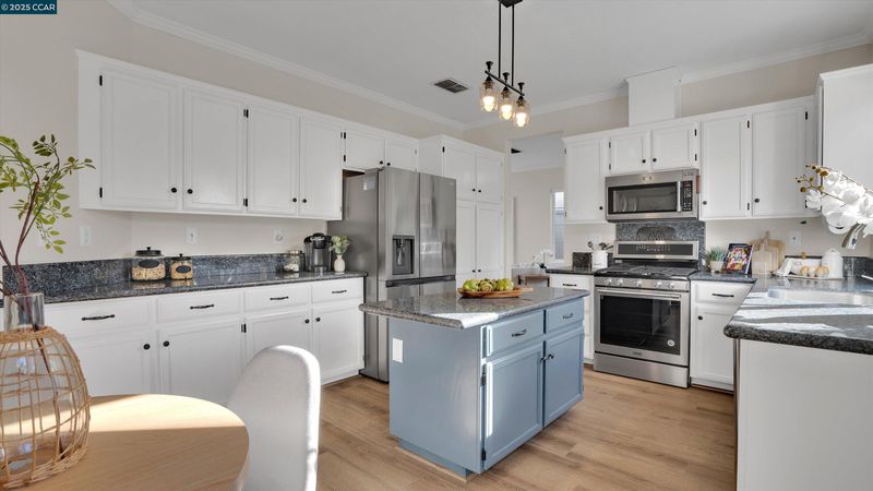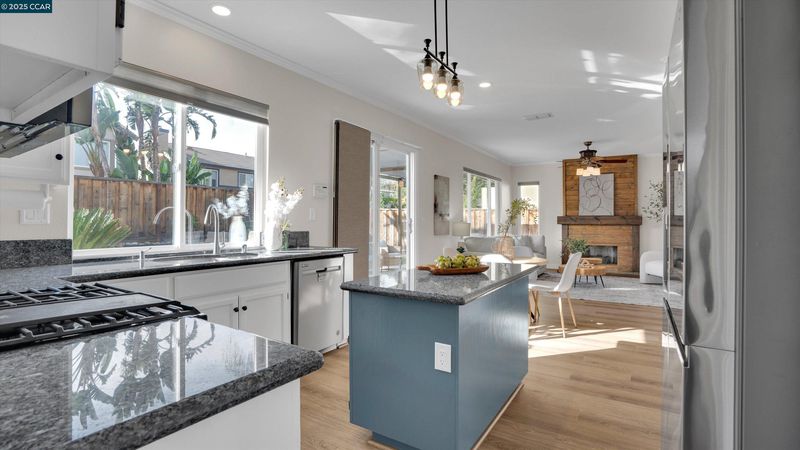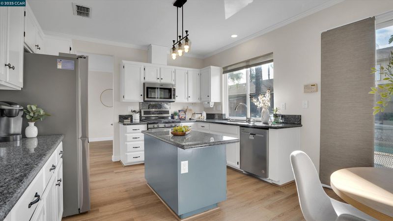 - Dishwasher, Gas Range, Microwave, 220 Volt Outlet, Stone Counters, Eat-in Kitchen, Disposal, Gas Range/Cooktop, Kitchen Island, Updated Kitchen