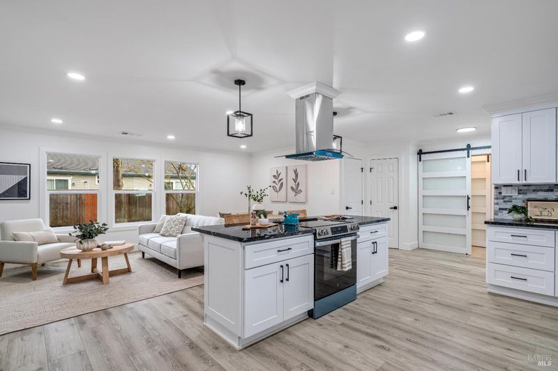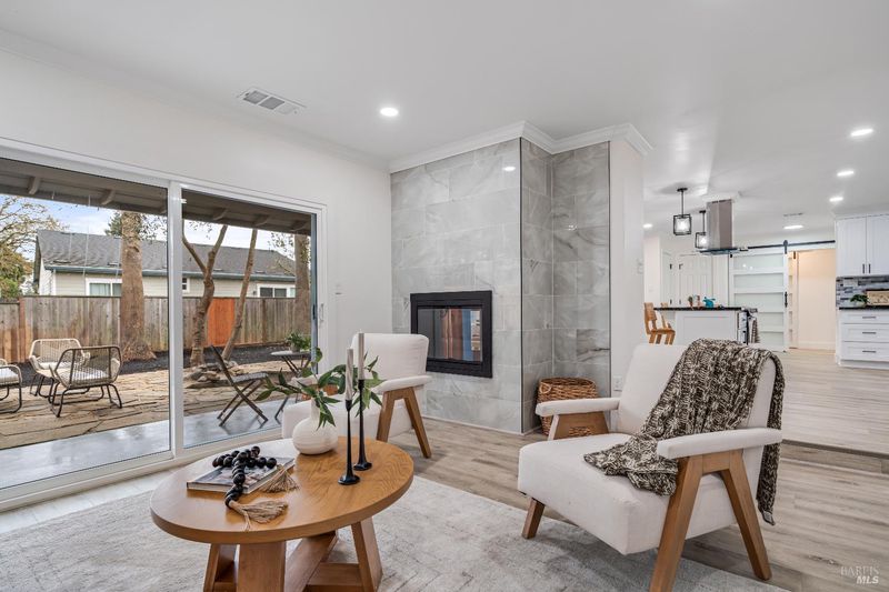 Newly remodeled single story 3 bedroom, 2 bathroom, 1,440sqft home offering an open floor plan from the gorgeous remodeled kitchen opening into the family room. Double sided tiled fireplace, kitchen w/new shaker white cabinets. Black quartz counter tops, & tiled back-splash. New stainless kitchen range, dishwasher, island hood, & wine fridge. Remodeled bathrooms with LED mirrors & nicely tiled tub & shower. New waterproof Laminate flooring, baseboards, crown molding, LED can lighting, & Smooth ceilings. New dual paned windows, patio slider, roof, gutters, water heater, gas furnace, & ducting. Freshly painted interior & exterior. Low maintenance front & rear yard landscaping. Home is staged. Conveniently located and just a few blocks from Jennings Park, Helen Lehman Elementary, and Safeway. Just 1 mile to highway 101 and 1.5 miles to Coddingtown Center, and 2 miles to downtown Santa Rosa.