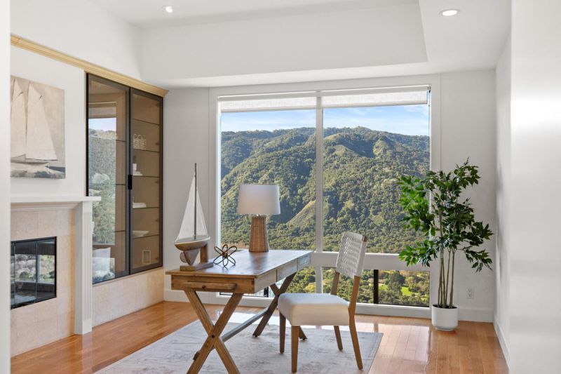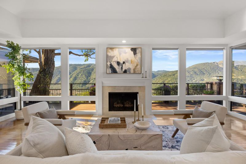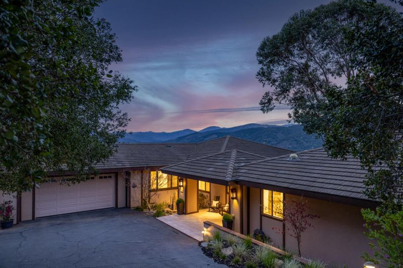 Breathtaking views from the Santa Lucia Mountains to the sea greet you as you enter this single-level Carmel Valley home. Step inside to beautifully updated finishes, tall windows and tray ceilings, wall-to-wall oak floors, and an effortless flow ideal for living and entertaining. The chef's kitchen features a Wolf gas range, Sub-Zero refrigerator, and granite counters. It opens to the main living spaces so the views stay front and center while you cook and gather. All three bedrooms are en-suite, including a spacious primary retreat with valley views, a spa-like bath, walk-in California Closet, and additional cedar closet. A separate office with fireplace offers flexibility and potential as a fourth bedroom. South-facing on 1.45 acres, in a gated community, with generous Trex decking, a BBQ patio, fenced orchard, garden shed, fully fenced yard, and large level yard space ready for your ideas, whether a pool, garden, bocce, or batting cage. Plus Air Conditioning and Solar! This perfectly peaceful Carmel Valley retreat awaits.