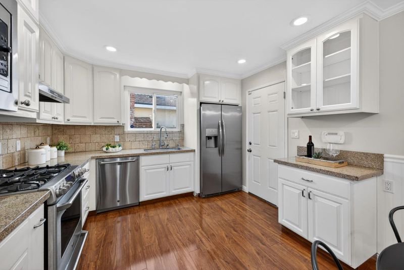 Welcome to this charming 3 bed, 2 bath single-family home sits on a spacious 7,316 sq ft corner lot. As you enter, you're welcomed into a bright and inviting living area that flows naturally into the dining and kitchen spaces, creating an open yet functional layout for everyday living. The kitchen is a standout feature, showcasing granite countertops, ample cabinetry, and a matching suite of Cafe appliances that offer both style and performance ideal space for those who enjoy cooking and entertaining. Whether its a quiet evening at home or hosting friends and family, the layout and outdoor space make the home feel comfortable and easy to enjoy. Fresh interior and exterior paint, updated fixtures, and thoughtful improvements throughout give the home a clean, refreshed feel. Down the hallway are three well-proportioned bedrooms, including a primary en-suite bedroom. The exterior has been refreshed with new landscaping, offering an attractive, low-maintenance outdoor setting. The two-car garage provides additional storage and laundry area functionality. Conveniently located in East San Jose, the home offers easy access to major commute routes including 680, 280, and 101, along with nearby public transportation, shopping, dining, and everyday amenities.