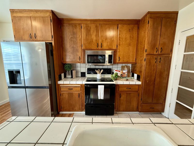 - Dishwasher, Microwave, Refrigerator, Gas Water Heater, 220 Volt Outlet, Breakfast Bar, Tile Counters, Disposal, Other