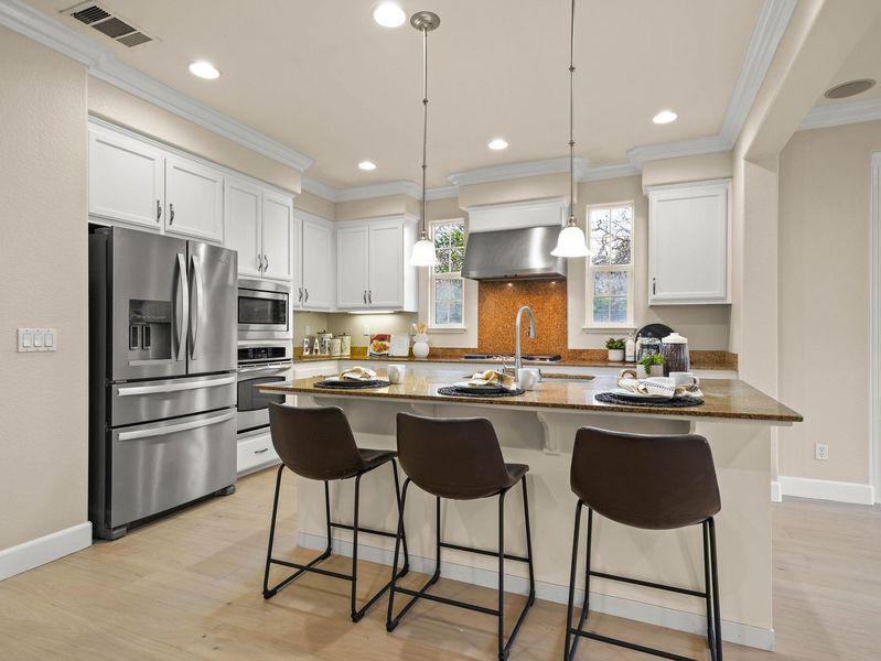- Dishwasher, Gas Range, Microwave, Oven, Refrigerator, Dryer, Washer, Tankless Water Heater, Breakfast Bar, Stone Counters, Eat-in Kitchen, Disposal, Gas Range/Cooktop, Kitchen Island, Oven Built-in, Updated Kitchen