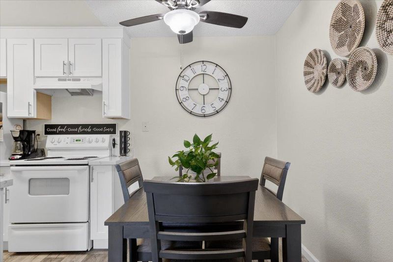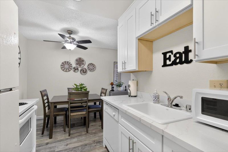 - Dishwasher, Electric Range, Microwave, Refrigerator, Dryer, Washer, Stone Counters, Electric Range/Cooktop, Disposal, Updated Kitchen