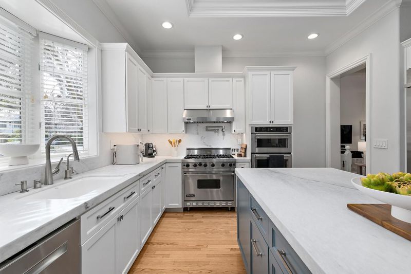 - Dishwasher, Hood Over Range, Island, Oven - Built-In, Oven Range - Gas, Refrigerator, Skylight