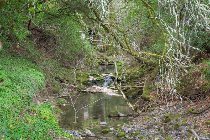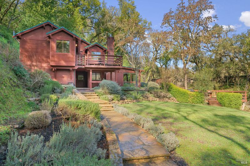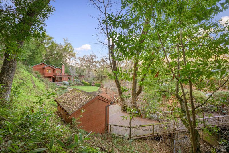 Set along Yulupa Creek on approximately 2.5 acres, this light-filled Craftsman-inspired home offers privacy, natural beauty, and a peaceful Wine Country setting just minutes from Glen Ellen. Surrounded by mature trees, fruit trees, and walking paths, the property feels tranquil and immersive. Inside, exposed beam ceilings, hardwood floors, and a Sonoma River Rock fireplace with reclaimed wood mantel create warmth and character. The main level features an open great room combining the updated kitchen, dining, and living areas. An upstairs second floor and den area provides a cozy retreat with scenic views, plus the primary bedroom has an exquisite, vaulted wood beam ceiling. Outdoor living includes level areas, mature landscaping, and a hot tub overlooking the trees and creek. Additional structures include a large three-car garage and a separate garage/studio building for flexible use. Recent kitchen and bath updates enhance this serene retreat near Jack London State Park, wineries, and village amenities.