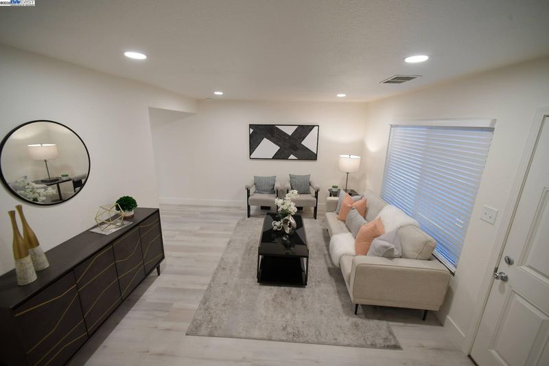 LOW HOA – Beautiful and bright two-story townhouse in desirable Hayward neighborhood. 2 bedrooms and 1.5 bath. Nice floor plan. Cozy living room. Upgraded laminate flooring and staircase. Remodeled kitchen with quartz countertop. Stainless steel appliances. Dining area. Updated bathrooms. In-unit laundry. Recess lights in living room and kitchen. Private patio with direct access to 2 covered parking spaces. Ideally located near schools, shopping, supermarket and other conveniences. Easy access to freeway I-880, San Mateo Bridge, and BART.