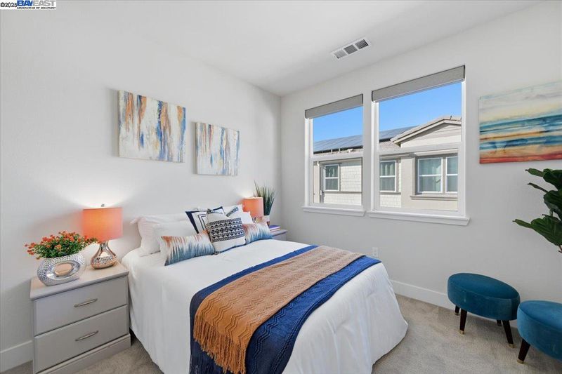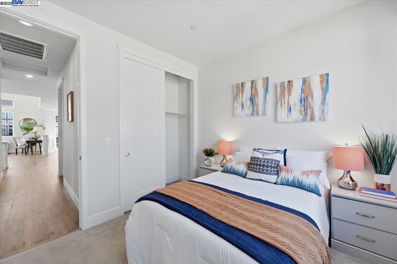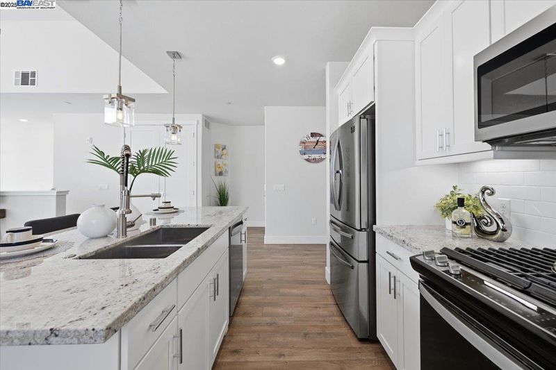 Contemporary Townhome-Style Condo in Prime Warmspring Fremont Location Experience modern elegance and everyday comfort in this beautifully designed 2-bedroom, 2-bath home offering 1,515 sq ft of bright and airy living space. All living areas are thoughtfully located on the top floor, easily accessible by stairs or your own private elevator — a true rare find! The open-concept layout features high ceilings, abundant natural light, and a gourmet kitchen with quartz countertops, stainless-steel appliances, and a spacious island perfect for cooking and entertaining. Retreat to a serene primary suite with a walk-in closet and spacious bathroom, while the second bedroom offers the flexibility for guests or a home office. Enjoy peaceful evenings on your private covered deck. Additional upgrades include LED recessed lighting, a tankless water heater, and a fully paid-off solar system plus paid off water softener for energy efficiency and comfort. Located in the highly desirable Mission Falls community of Fremont. Just minutes from BART, Highways 680 & 880, shopping, dining, and top-rated Irvington schools, this home combines style, convenience, and an exceptional location for today’s modern lifestyle.