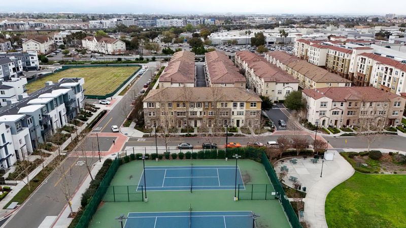 Stunning Model Townhome, prime location and facing directly to the green park & mountain views & beautiful tennis court - offers unparalleled privacy! Desirable floor plan with bonus family room in the first floor with half bathroom and in house laundry. One bedroom and full bathroom on the second floor & two master suites on the top level with walk-in closet. Open floor plan gourmet kitchen with upgraded quartz countertops and stylish backsplash. Two cars side by side garage. Beyond your door, Bob McGuire Park, Tennis Court & Kids Play area right across the street. Walking distance to Great Mall, Trader Joe, Stratford school and Milpitas BART transit center. Easy access to Highways 680/880/237. Whether you are driving to H-Mart, 99 Ranch and Costco in ~10 minutes, or commuting to the nearby high tech company campus, this home puts you at the center of it all!