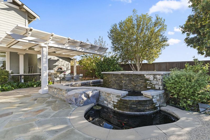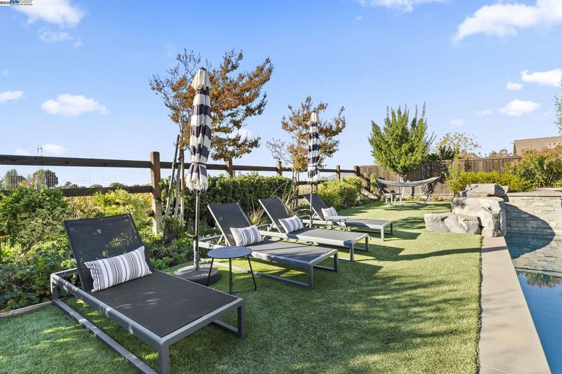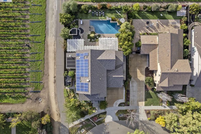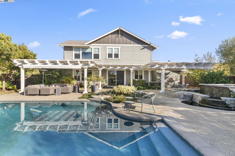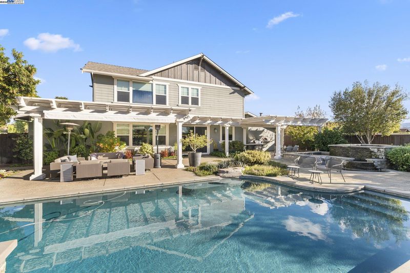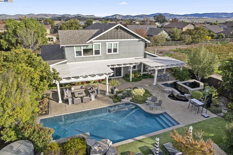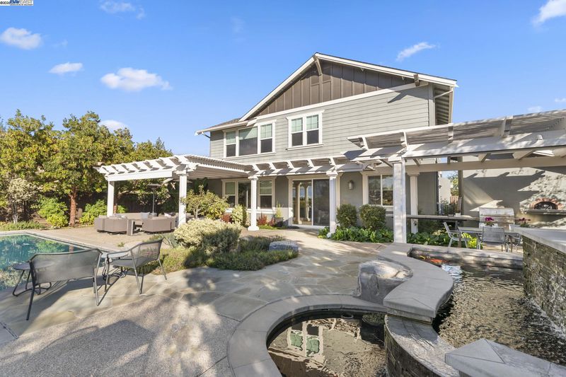 Experience Resort-Style Living in the highly desirable South Livermore Valley. This stunning east-facing home is surrounded on two sides by picturesque vineyard lands. Meticulously updated with over $600K in upgrades, it features a remodeled kitchen with custom cabinetry, high-end appliances, quartz counters, and a large island with breakfast bar opening to a spacious family room with built-in surround sound. Enjoy a formal dining room with custom buffet and wine storage, a formal living room with fireplace, plus a downstairs bedroom and full bath. Upstairs offers a luxurious primary suite with spa-like bath and a spacious walk-in closet, two guest bedrooms, loft, and laundry room. The beautifully landscaped front yard welcomes you with an inviting porch, while the resort-style backyard boasts a solar-heated pool, spa, koi pond, built-in pizza oven, large custom storage shed, two covered patios, artificial grass, raised planters, and vineyard land views. Rounding out this remarkable home is a three-car tandem garage with custom cabinets and an owned solar electric system. Just minutes from wineries, a craft brewery, parks, and mere steps from walking and biking trails—this home redefines staycation living!