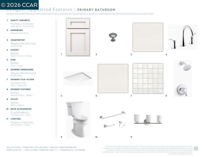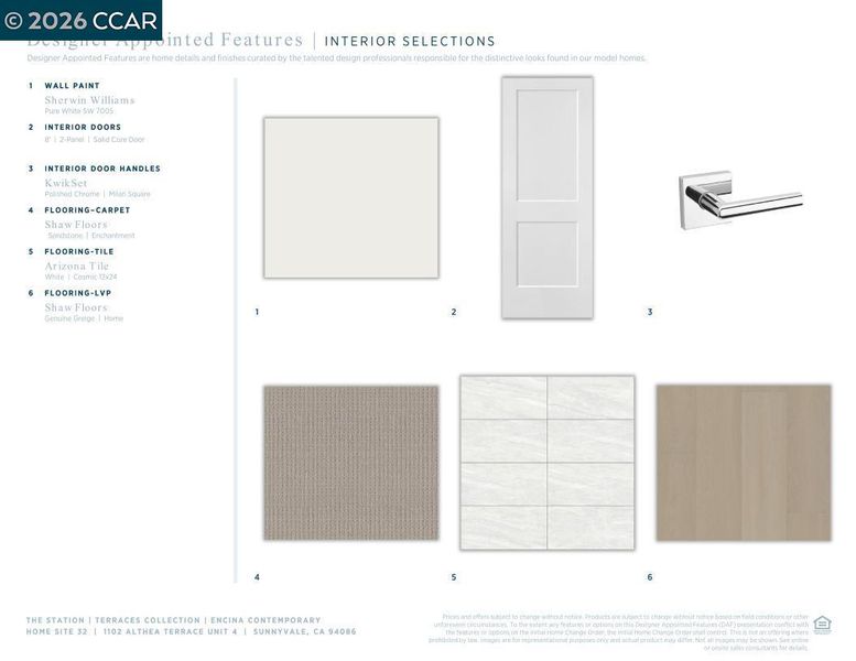 Connect with what matters most at Terraces at The Station, a new townhome community in Sunnyvale, the heart of Silicon Valley. A truly accessible home with a room on every level. Craftsman style stairs flow up to the bright living level on the second floor, revealing the spacious great room, covered balcony, and casual dining area. The designed kitchen is highlighted by a large center island with breakfast bar, Energy Star KitcheAid stainless steel appliances, modern cabinets, quartz countertops with designer tile backsplash. The third floor, the gracious primary bedroom suite is enhanced by an ample walk-in closet and a gorgeous primary bath with a dual-sink vanity, a large luxe shower with seat enhanced by clear-glass enclosure. Thoughtfully designed interiors with 8-foot doors, 5-1/2" baseboards, and modern energy-saving LED integrated recess lights throughout. Finished 2-car garage includes pre-wired plug with 50 amps for electric car charging. Enjoy the community clubhouse, indoor/outdoor lounge area, fireplace, bocce ball court, dog park, walking paths and expansive lawns. Terrace at the Station is located near Santana Row, Valley Fair Mall, Shopping Centers. Close to VTA Light Rail, Lawrence Caltrain and Bart. (photos not of actual home, for marketing only)