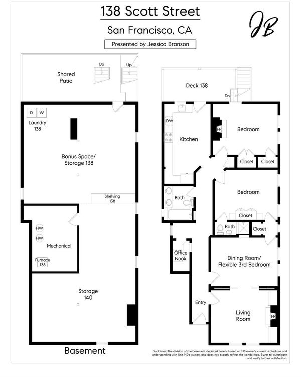 In the best location steps to NOPA, Lower Haight, Duboce Triangle, and Alamo Square, with a 97 WalkScore, a 91 TransitScore, and an 88 BikeScore, this beautiful, spacious, 2BD/2BA Hayes Valley condo w a flexible formal dining room/3rd bedroom, a huge exclusive use bonus storage space in the basement, and a private, exclusive use deck, will melt your heart! Period details and soaring ceilings. Fab, warm, wood floors. Spacious LR w expansive windows, a decorative marble frplc, crown moulding, a built-in media cabinet, and floor to ceiling built in bookshelves. The living room flows through period pocket doors to the double parlor formal dining space perfect for large family gatherings and entertaining, or close the doors and use the spacious room as a flexible 3rd BDR/office. The updated eat-in kitchen w granite countertops, stainless appliances, brand new gas stove, and plenty of work and storage space, opens to the sumptuous, private ipe deck. 2 ample bedrooms w beautiful doug fir flrs, one w an en suite full bath, and the other w a decorative marble frplc complete the home. The basement offers a huge exclusive-use bonus space perfect as a gym, media room, music studio, or creative space along with private laundry and additional storage. The home has been freshly painted throughout, w refinished kitchen wood floors and some new lighting. Covered leased parking 2 blks away. Steps to San Francisco's most beloved neighborhoods and green spaces, including Alamo Square and Buena Vista Park, and just one mile to Golden Gate Park. Close to the N-Judah and other major MUNI lines, tech shuttles, freeway access, and excellent bike routes. A rare opportunity for space, flexibility, and classic Victorian charm in one of the city's most dynamic locations!
