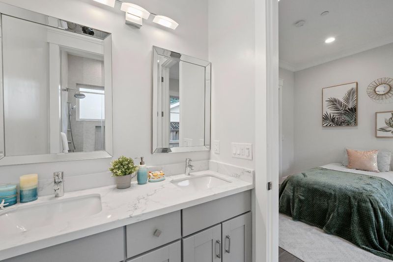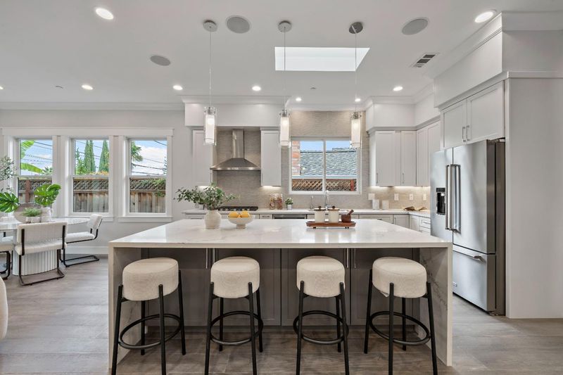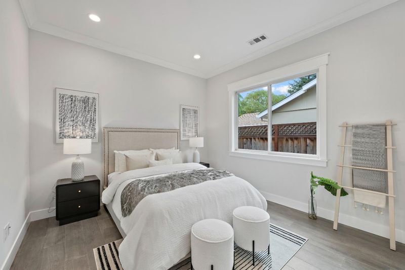 Built in 2022, this stunning single-story modern home in Saratoga offers the perfect blend of luxury, comfort and flexibility. With 2,446 sq. ft. of living space plus a 692 sq. ft. attached ADU with a private entrance. Inside, you'll find 5 bedrooms and 4.5 baths, including two primary suites in the main house, this home is ideal for multi-generational living. The open floor plan showcases engineered hardwood flooring, high ceilings, and skylights that fill the home with natural light. The gourmet kitchen boasts quartz countertops, a gas cooktop, built-in oven and microwave, and a large island. Enjoy multi-zone central A/C, forced-air heating, and double-pane windows. 9 built-in speakers and 8 pre-wired security camera. Conveniently located near Hwy 85, downtown Saratoga, Westgate Center, and top-rated Campbell Union schools. This home offers exceptional convenience in one of Silicon Valley's most desirable communities.