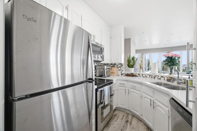 Welcome to this stunning 2-bedroom, 2-bath corner residence in a boutique elevator building in the heart of the Marina, a building with stunning Bay, Alcatraz, and Fort Mason views. This unit is filled with natural light, and an open floor plan ideal for modern living and entertaining. The gourmet kitchen offers sleek quartz countertops, stainless steel appliances, and ample storage, flowing seamlessly into the living and dining areas with a cozy fireplace. The spacious primary suite includes custom closets and a spa-inspired en-suite bath, while the second bedroom is generously sized and adjacent to a stylish second bathroom with a glass-enclosed shower. Additional highlights include laminate flooring, newer carpet in bedrooms, in-unit washer and dryer, central heating & cooling, secure 1 car parking, private storage, and a rooftop with stunning views. Prime Marina location close to Fort Mason, Marina Green, and top dining.
