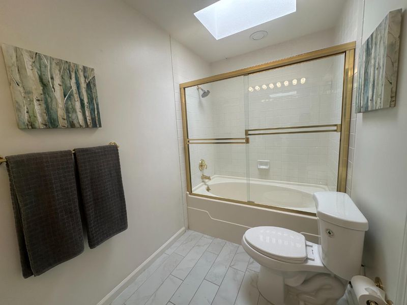 Double Sinks, Shower over Tub - 1, Skylight, Stall Shower, Tile, Updated Bath