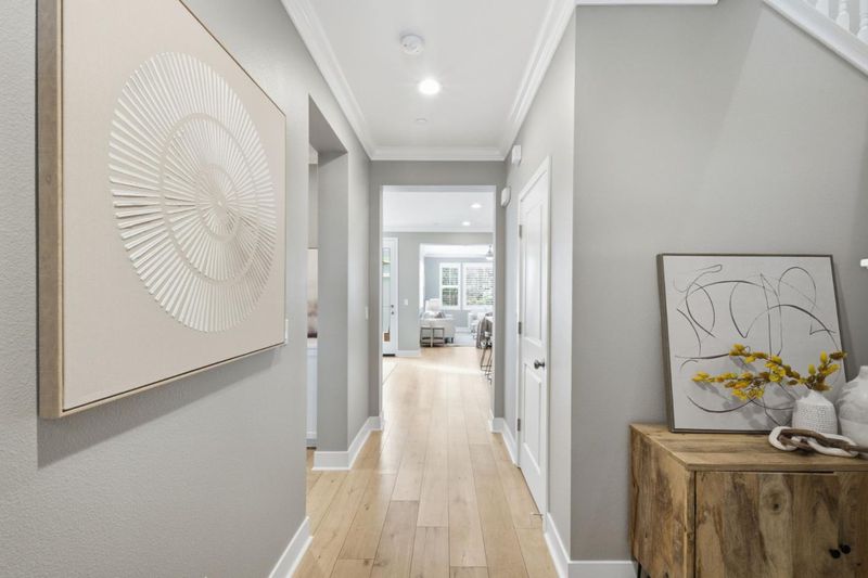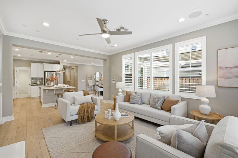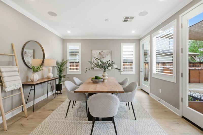Welcome to the highly desirable Loden Place community in Morgan Hill. This move-in-ready home offers 4 bedrooms and 3 bathrooms, including a full bedroom and bathroom on the main level, with thoughtfully designed living space and a backyard ready for entertaining. Upgrades include fresh paint, crown molding, plantation shutters throughout, hardwood flooring downstairs, and designer finishes. The chefs kitchen features quartz countertops, a gas cooktop, an eat-in area, and opens to a formal dining room ideal for family meals and gatherings. Cozy evenings await by the living room fireplace, while the upstairs primary suite provides a spa-like retreat. The modern backyard supports indoor-outdoor living with a fire pit featuring built in seating, gas installed for future upgrades, and a turf-lined dog run. Additional highlights include an owned solar system with battery, detached garage with private gated access, and a prime location near parks, shopping, and dining. A rare opportunity to own a stylish, energy-efficient home in one of Morgan Hills premier neighborhoods.