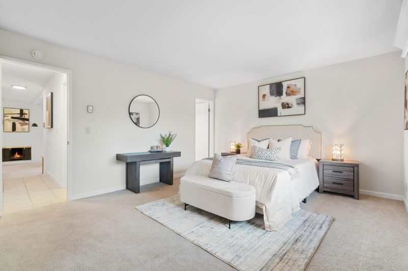 This spacious top-floor, two-bedroom, two-bath residence offers an exceptional opportunity to own a well-located home in the heart of Mountain View. Set quietly within the community, the unit enjoys privacy, abundant natural light, and beautiful scenery. The thoughtfully designed floor plan features a generously sized living area with a wood-burning fireplace, a built-in desk, and a dry bar. Sliding glass doors open to a private balcony, ideal for morning coffee or evening unwinding. The kitchen provides ample storage and counter space, and a generously sized dining area with a picture window of the lush grounds. Both bedrooms are well-proportioned, including a primary suite with an en-suite bath and ample closet space. Additional highlights include two assigned parking spaces, additional storage, and a location with convenient access to downtown Mountain View, Caltrain, major tech campuses, and commuter routes. For buyers seeking space, comfort, and location, this home represents one of the strongest values currently available.