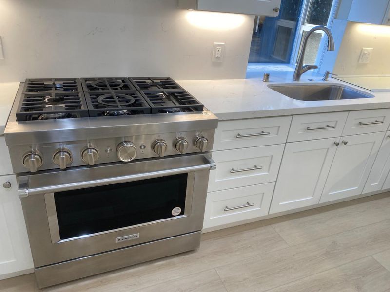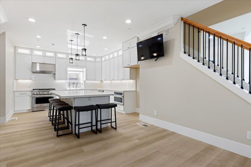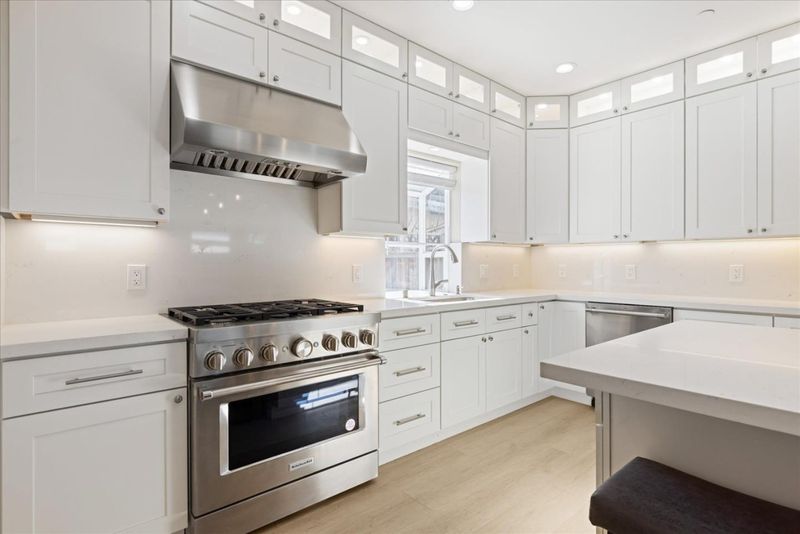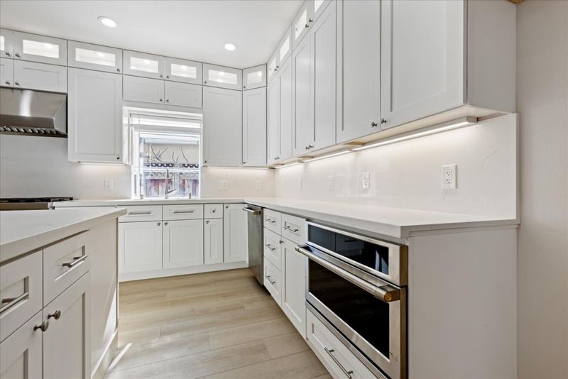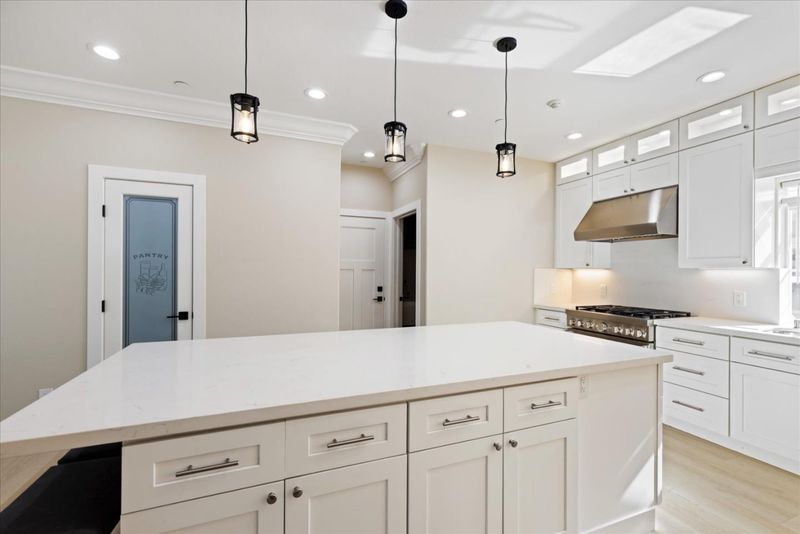 - 220 Volt Outlet, Cooktop - Gas, Countertop - Quartz, Dishwasher, Dual Fuel, Exhaust Fan, Garbage Disposal, Hood Over Range, Hookups - Gas, Hookups - Ice Maker, Island, Microwave, Oven - Electric, Oven Range - Electric, Pantry