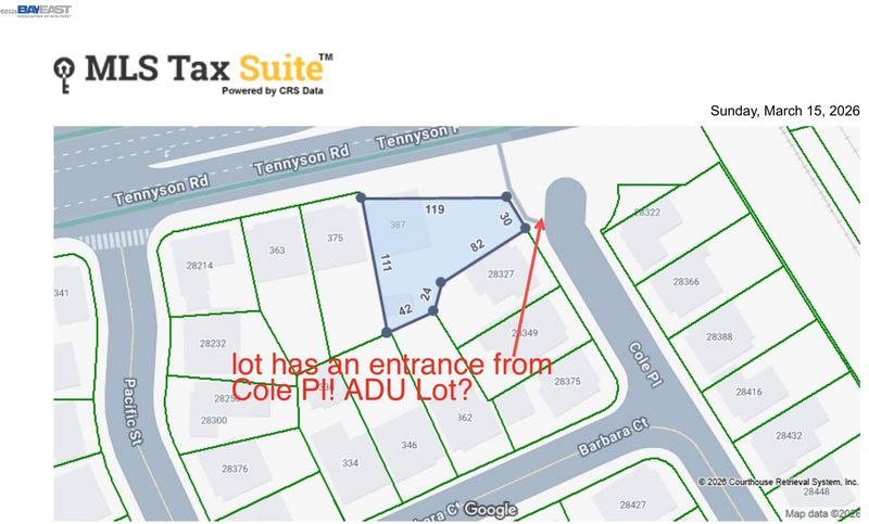 Ideal for investors, builders, or owner-users looking to maximize value. Lot is perfect for RV/Boat Access Contractor trucks. Unique separate entrance from Cole Pl. for your toys. Opportunity knocks in Hayward! Situated on a generous lot, this property offers excellent potential for expansion, additional units, or future development (buyer to verify with City of Hayward). The home is currently configured as a 4-bedroom, 2-bath, offering flexible living space for extended family or rental income (public records reflect 3-bedroom, 1-bath — buyer to verify). The lot size and layout may present an opportunity for an ADU, JADU, or possible SB9 urban lot split, creating multiple income streams or long-term upside. Strong candidate for value-add strategies including ADU development or lot split potential. Conveniently located near schools, parks, shopping, BART, and major commuter routes. Rare chance to unlock the full potential of this property — don’t miss it!