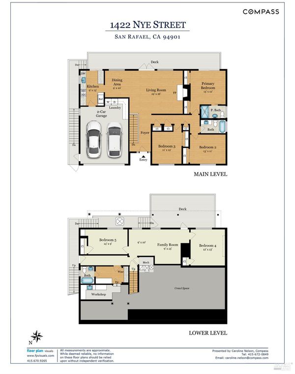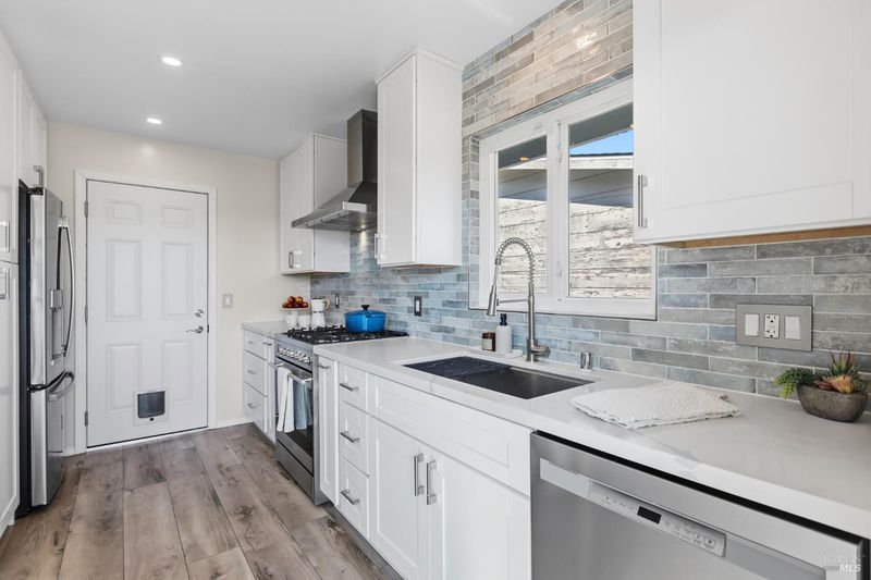 Welcome to 1422 Nye Street, a beautifully updated, light-filled home with sweeping water and hillside views in the heart of San Rafael. Offering five bedrooms and flexible living areas, this residence features an open-concept living and dining space with cozy fireplace, walls of windows, and seamless indoor-outdoor flow to a spacious view deck. The remodeled kitchen includes quartz countertops, custom cabinetry, stainless steel appliances, designer finishes, and direct access to the deck and two-car garage, plus a butler’s pantry and laundry area with new washer and dryer. The primary suite offers two closets, an updated bath, stylish barn-door detail, and deck access, with two additional bedrooms and a full bath on the main level. The lower level includes a family room, two bedrooms, a full bath, and wine tasting room. Highlights include a new roof, air conditioning, updated baths, refinished hardwood floors, new carpet, finished garage with epoxy flooring, level turf yard, decks, paver patio, fire pit, gardens, and fruit trees—just moments from downtown San Rafael.