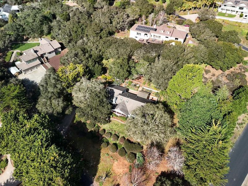 Welcome to Berta Meadows, a private gated community. This single level four bedroom home with a three car garage sits on an expansive 1.15 acre lot and offers space, light, and a strong connection to the outdoors. Vaulted ceilings and skylights create an open, airy feel, with tile flooring in the dining area and hardwood floors in the living room. The eat in kitchen features stainless appliances, an island with sink, and French doors that open to a private backyard with a covered pergola and terraced garden space, ideal for outdoor dining or quiet afternoons. Four well sized bedrooms include mirrored closet doors and an updated hallway bath. The primary bedroom is generous, with windows that look out over the property's natural landscape. One of the guest bedrooms is ideally suited for a home office or flexible workspace. Throughout the home, views capture the natural landscape of a mix of mature native trees, and thoughtfully placed walkways leading to a sunny front patio beneath majestic oaks. The three car garage includes a utility and laundry room with a dedicated work area. Ample parking and room to spread out complete this special property.