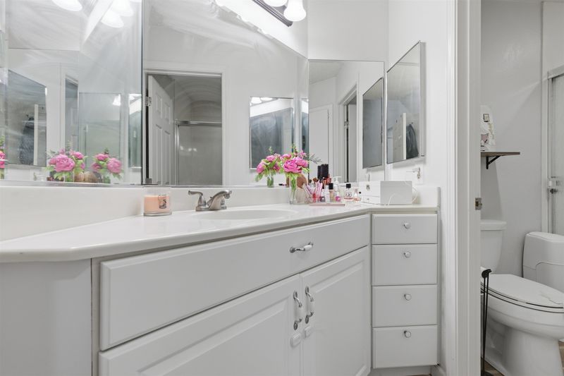 Warm Springs beauty with award-winning schools! This bright second-floor, end-unit 2-bedroom, 2-bath condo is tucked inside a gated community and showcases vaulted ceilings, abundant natural light, recessed lighting, and luxury laminate flooring throughout. The remodeled, HGTV-inspired kitchen features granite countertops, stainless steel appliances, a gas stove, and modern cabinetry, plus an in-unit washer and dryer for added convenience. Enjoy a private setting with no door-to-door neighbors, a spacious balcony overlooking the pool, and extra storage with supported attic space accessed from the primary closet. Bathrooms are tastefully upgraded with designer vanities and modern tile, complemented by fresh interior paint. Community amenities include a resort-style pool and spa, children’s play area, and landscaped grounds. Ideally located near I-880/I-680, shopping, dining, parks, transit, and top Fremont schools. HOA includes water and garbage. Move-in ready and welcome home!
