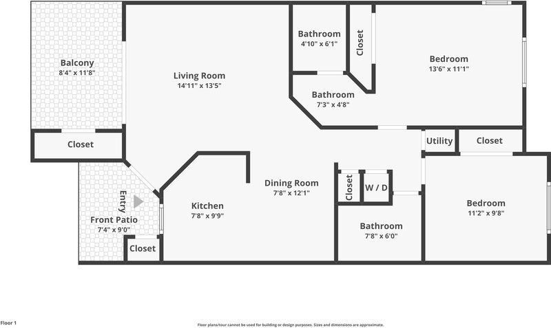 - 1 Bedroom, 2 Baths, Laundry Facility, Main Entry