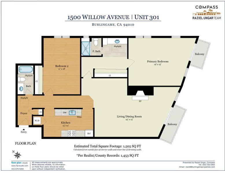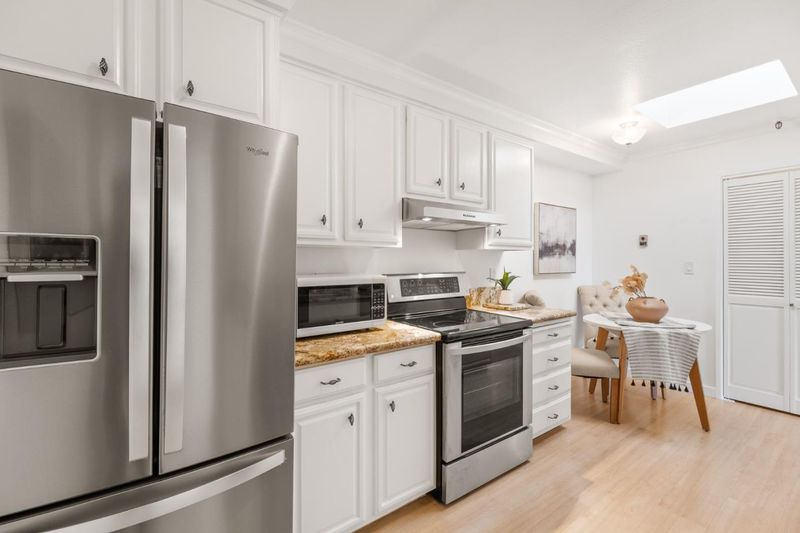 Bright top-floor end-unit condo just one-half mile from Burlingame Avenue, offering an ideal opportunity for starting out or transitioning from a larger Burlingame or Hillsborough home. Secure access from either the elevated street entrance or the underground garage leads to a private retreat filled with natural light from 3 skylights, tall windows, and sliding glass doors to 2 sunswept balconies with tree views. Thoughtfully arranged 2-bedroom, 2-bath floor plan with generous living and dining spaces, updated kitchen with granite counters and stainless steel appliances, and a wood-burning fireplace for added warmth. New carpeting creates a move-in-ready setting. Primary suite features a private balcony, abundant closets, and a skylit bath with large updated shower. Second bedroom and adjacent bath offer flexibility for guests or office use. Secure underground parking for 1 car, elevator access, and controlled-entry lobby. Set in Burlingame Park, a tree-lined neighborhood with sidewalks, close to shopping, dining, and acclaimed Burlingame schools.