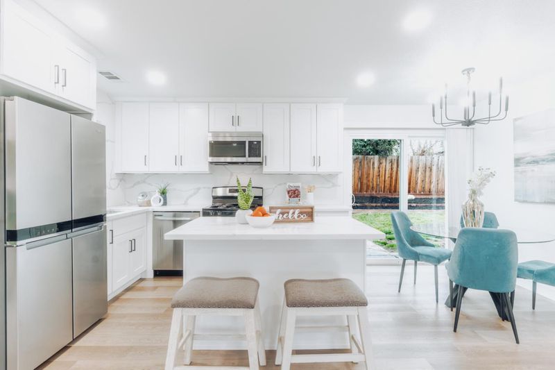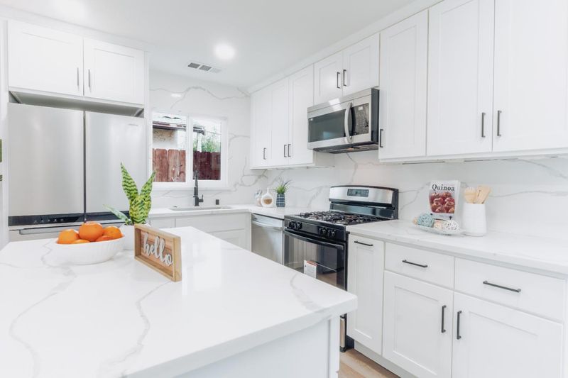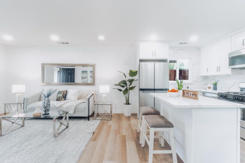 Welcome Home to this fully remodeled 3 bedroom, 2 full bathrooms, conveniently located in San Jose! Striking curb appeal, starting with the fresh and brightly painted exterior, massive privately gated courtyard and wide, oversized driveway, that can easily accommodate multiple vehicles. Interior completely and tastefully remodeled. Brand new, waterproof vinyl flooring throughout, new interior door, new baseboards and trims, all new windows, freshly painted and re-textured interior. Fully remodeled kitchen offers new cabinets, gleaming quartz countertops, newer stainless appliances, new lighting and new sliding door to backyard. Both bathrooms have been completely remodeled with tile flooring, new vanities, new toilets, new lighting and plumbing fixtures, new quartz walls, new glass shower doors, new tub in hall bathroom. Nearly brand new central heating and cooling. Ample backyard with fresh grass perfect for entertaining. Attached two car garage also offers additional potential for additional living apace or ADU. Most affordable turn-key home in San Jose awaits for you!