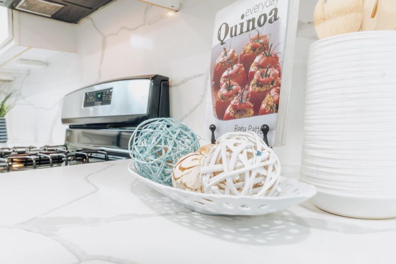 - Countertop - Quartz, Island, Microwave, Oven Range - Gas, Pantry, Refrigerator