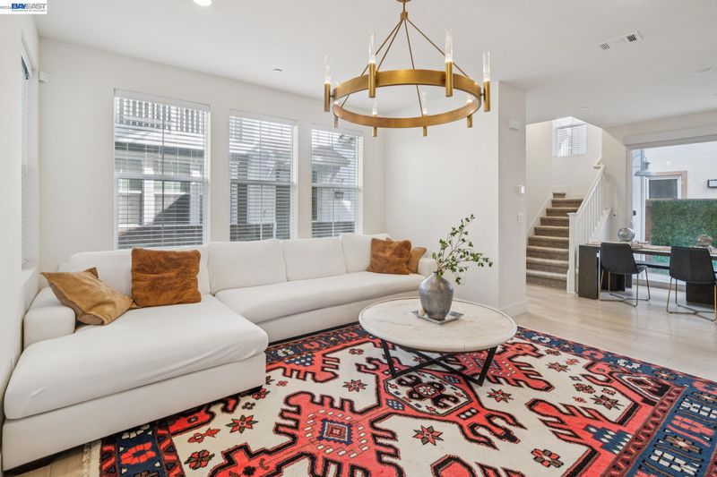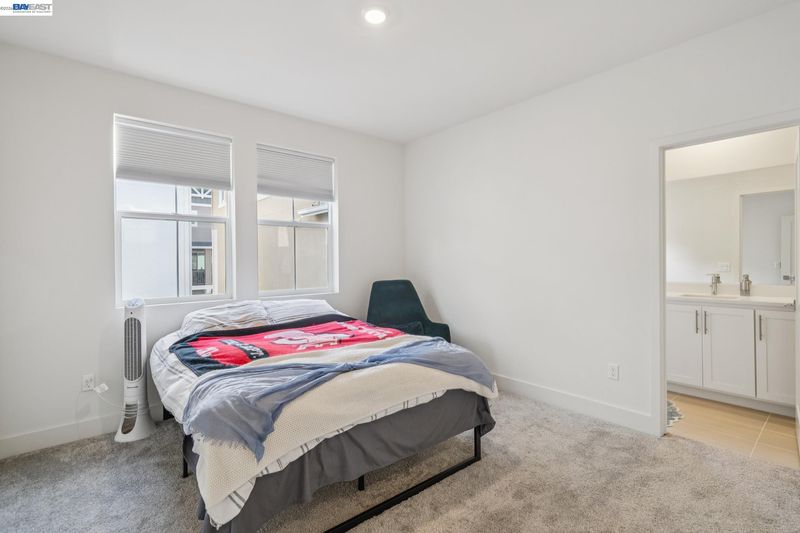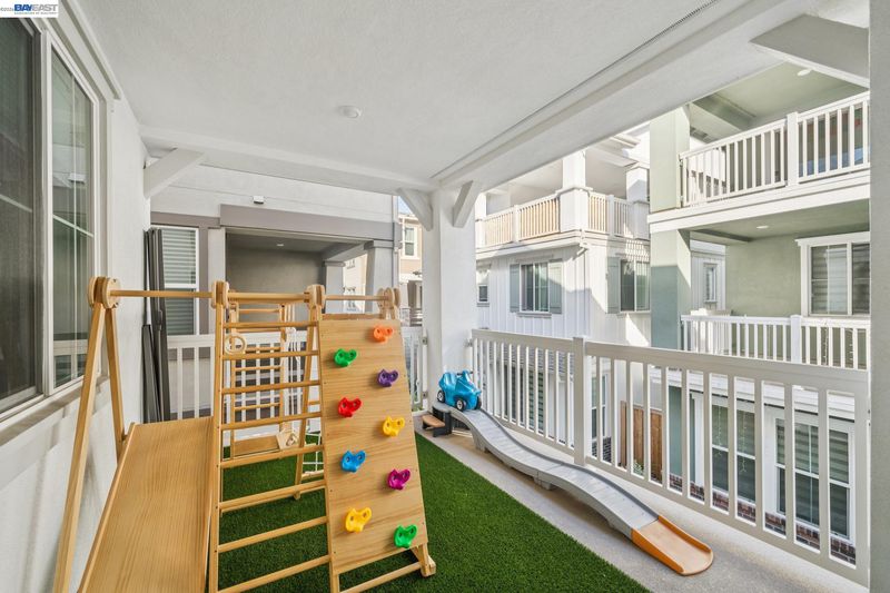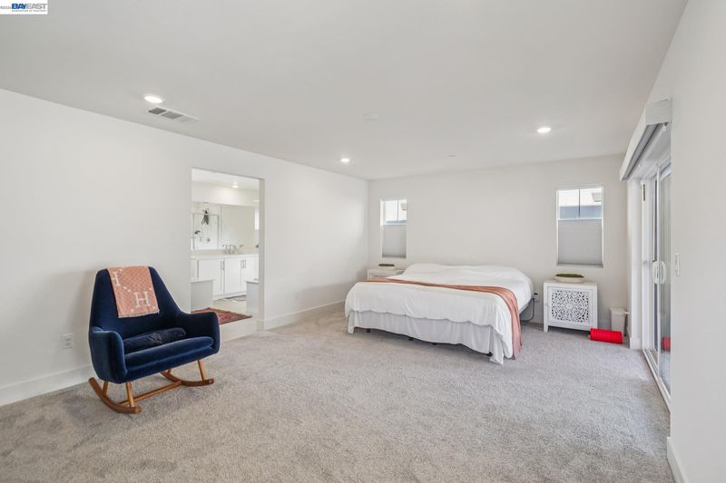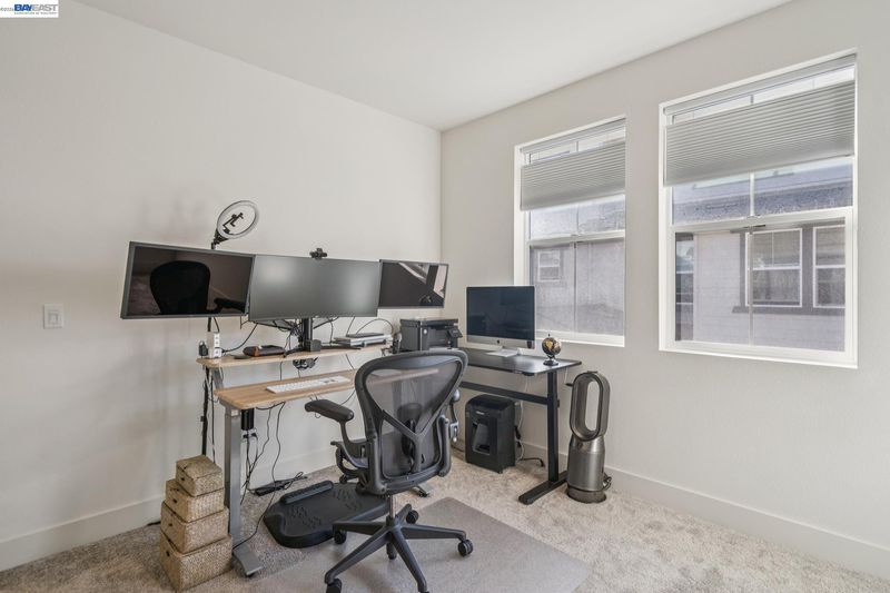 Welcome to this stunning 2,698 Sq Ft home with a versatile 2-story layout and a private third-floor master retreat in the sought-after Bridgeway community, built in 2023 and designed for space, comfort, and flexibility. The top-floor owner's suite is a true sanctuary — secluded on its own level with an oversized balcony, spa bath, and a 200+ Sq Ft custom walk-in closet. The middle level features three spacious bedrooms, a versatile loft, a laundry room with premium LG washer/dryer, and a second balcony for seamless indoor-outdoor flow. Unlike most tri-level homes in the community where the kitchen sits on the second floor, the main level here puts the chef's kitchen, dining area, and great room all at ground level — ideal for entertaining, easy grocery access, and seamless backyard flow. GE appliances, quartz counters, large island, half bath, and direct garage access complete the level. Backyard finished with paver stones. Full soft water system + reverse osmosis filter. Solar owned. 2-car garage plus driveway. Wide staircases, thoughtful separation, and abundant natural light make this layout ideal for multi-generational living and privacy. Enjoy parks, trails, and playgrounds in Bridgeway — just minutes from Meta, Tesla, I-880, and Dumbarton Bridge.
