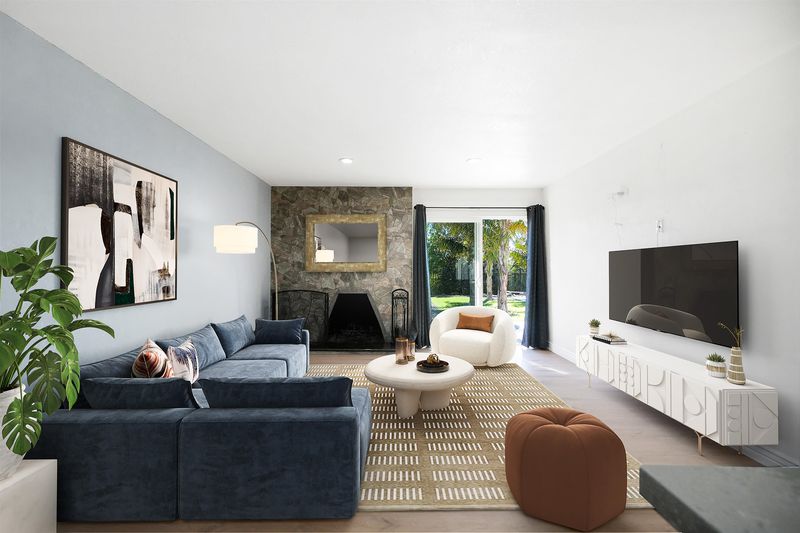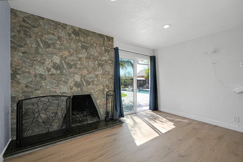 NEW REDUCED LIST PRICE. Step into your own tropical retreat, where an inground pool with a cascading rock waterfall awaits, surrounded by lush, easy-care landscaping and winding paths that lead to charming patios in both the front and back yards. Host unforgettable gatherings outdoors, then move inside to discover three generous bedrooms and two stylishly updated bathrooms with elegant tile floors and modern vanities. The living area features fresh laminate flooring, while plush carpets in the bedrooms invite you to relax. Gather around the family room’s striking stone fireplace, or slide open the door to reveal a stunning backyard oasis that blurs the line between indoor comfort and outdoor beauty. The gourmet kitchen offers abundant counter space, ample cabinetry, and a spacious walk-in pantry for all your culinary adventures.