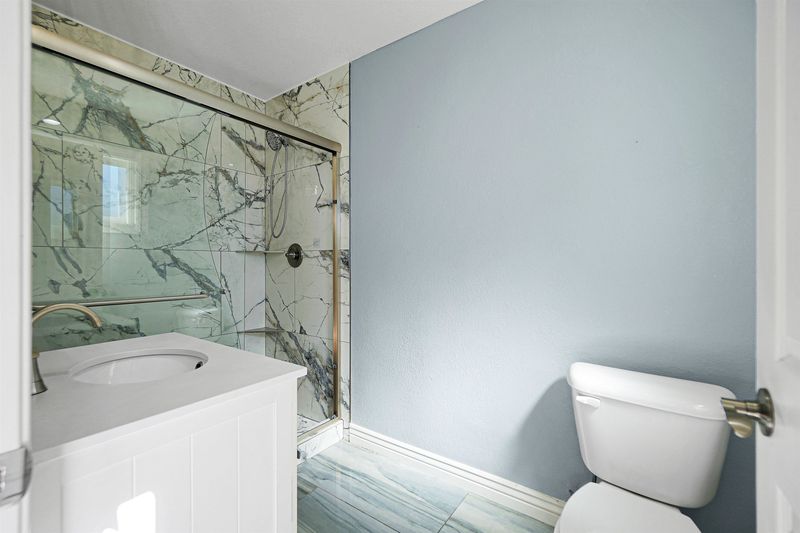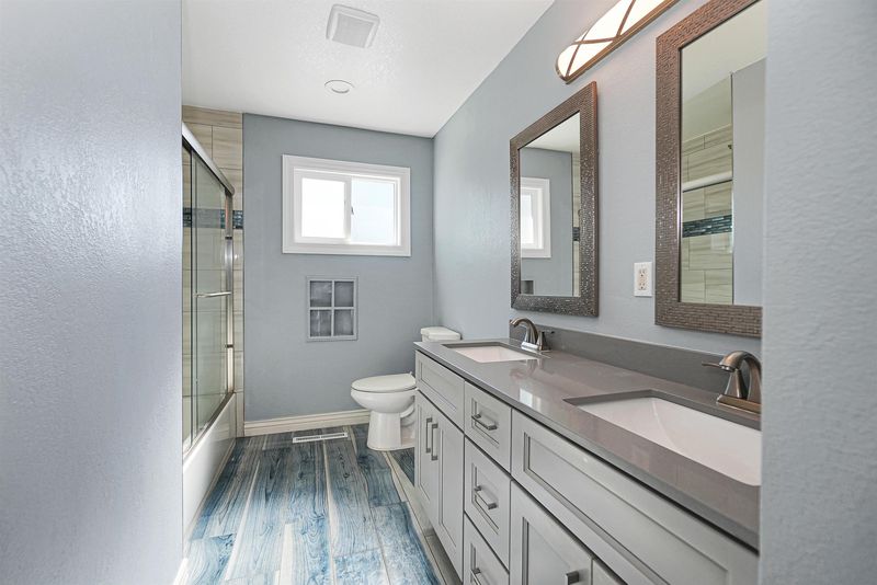 - Shower Over Tub, Solid Surface, Tile, Updated Baths, Double Vanity, Window