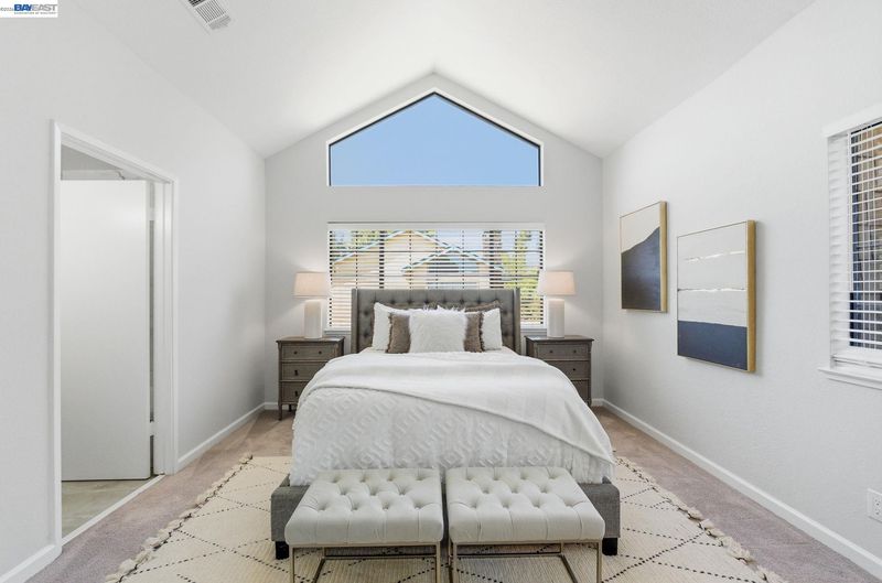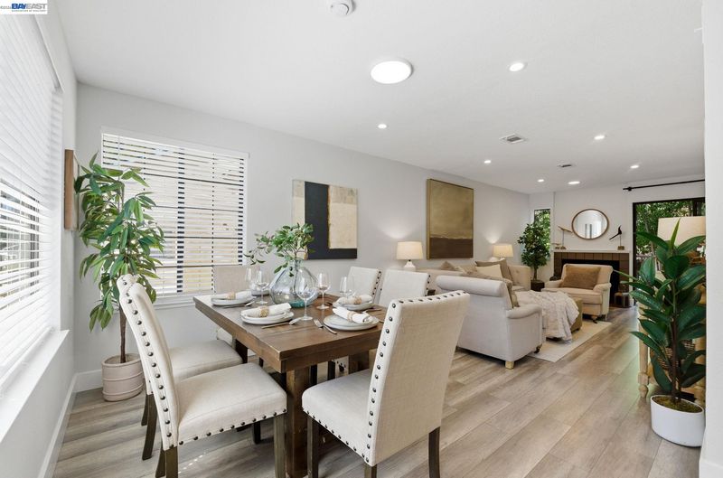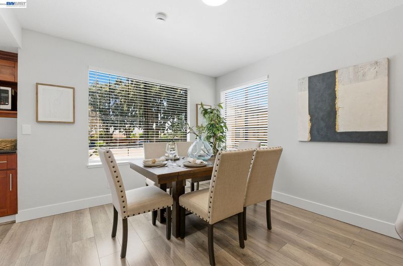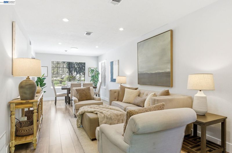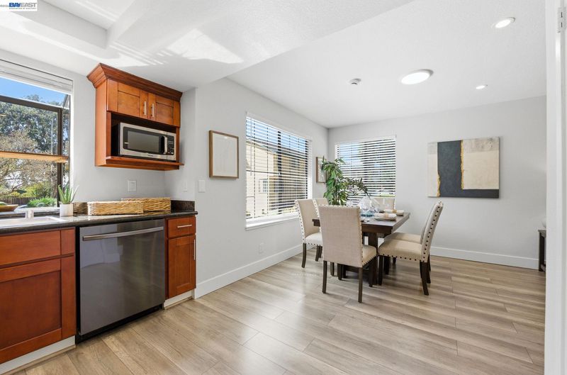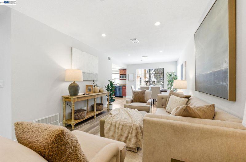 Experience the impeccable pride of ownership found at 43104 Grimmer Terrace. This gorgeous townhome is perfectly positioned as an interior end-unit, conveniently tucked within the complex for added privacy and the benefit of only one adjoining neighbor. The sun-drenched interior features stylish vinyl plank flooring throughout the main level and an open living/dining combo anchored by a classic fireplace. Slide open the doors to a spacious deck overlooking the sparkling community pool, the perfect backdrop for summer. The chef’s kitchen is equipped with beautiful cabinetry, granite countertops, a spacious pantry, and stainless steel appliances including a brand new stove. The upper level serves as a quiet retreat with plush carpeting and two full en-suites. The primary suite is particularly impressive, boasting soaring vaulted ceilings, an abundance of natural light, and a spacious walk-in closet. This home is built for long-term comfort with significant upgrades including a brand new HVAC system, newer water heater, and dual-pane windows. The property includes a two-car garage, access to top-rated schools, and inside laundry with the washer and dryer included! Picture-perfect and meticulously maintained, this exceptional property is ready for you to call home.